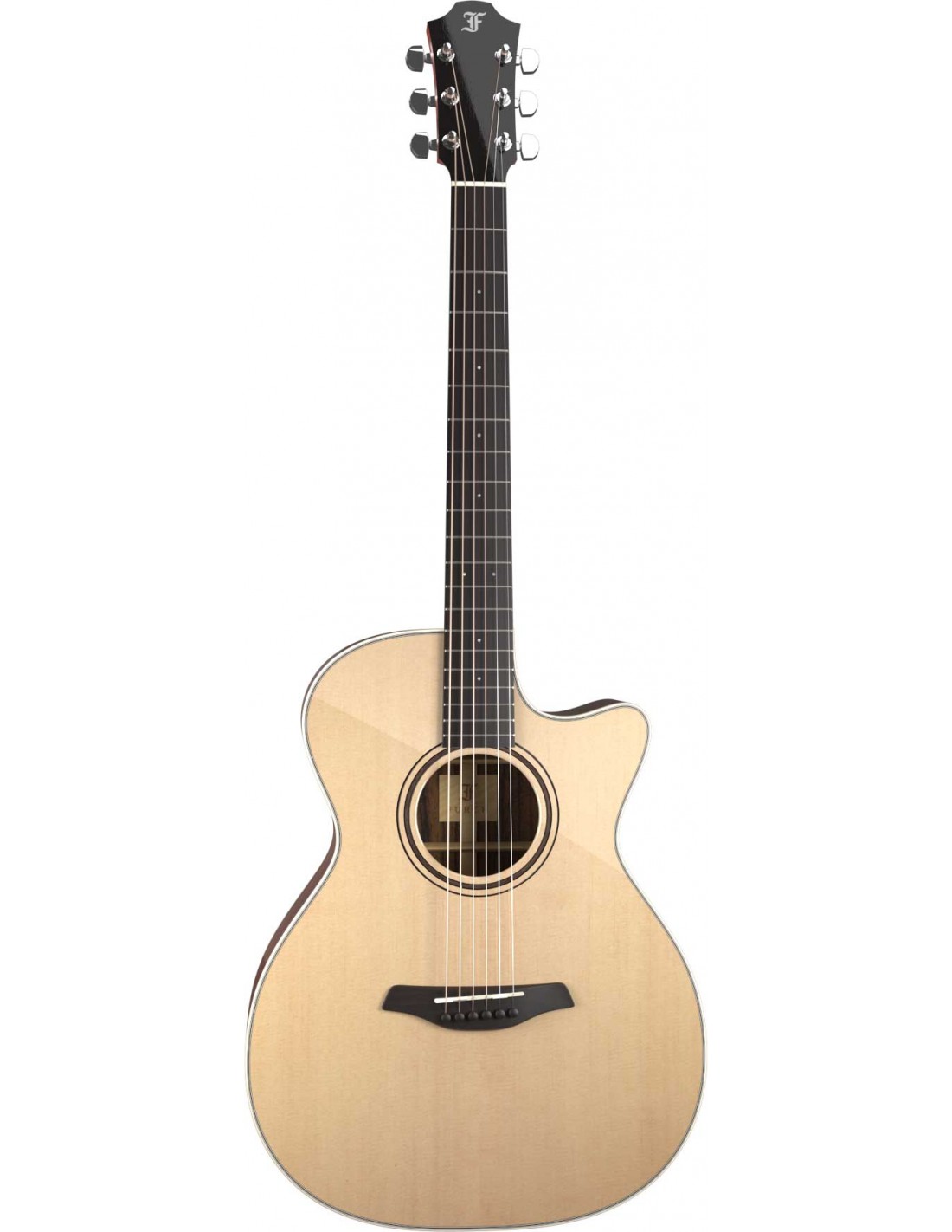 GUITARRA ACUSTICA DE 6 CUERDAS CON CUTAWAY 'Body Orchestral Model Cutaway Neck-to-body joining 14th fretSolid top - grade Sitka spruce - AASolid back and sides (SR) - grade Indian rosewood - AABinding (SR) Artificial ivoryBinding (SM) Artificial tortoisePurfling Five-layer black & white contrast lineRosette Double ring with walnut inlayBridge EbonyBridge pins EbonySaddle TUSQ fully compensatedString spacing at the bridge 55 mmTop finish Full-Pore High-Gloss FinishBack & sides finish Full-Pore High-Gloss FinishPickguard Anti-scratch transparent Neck Nut width 45 mmAvailable nut width 43 mm and 48 mmNeck reinforcement CNR System with two-way adjustmentNeck profile Furch soft VScale length 650 mmFingerboard material EbonyFingerboard radius 400 mmFingerboard front inlay White pearl position dotsFingerboard side inlay White pearl position dotsFret finish Polished frets for higher playing comfortHeadstock overlay EbonyNeck material African mahoganyMachine heads Furch machine Chrome - gear ratio 1:18Nut TUSQString spacing at the nut (45 mm) 38 mmString spacing at the nut (43 mm) 36.6 mmString spacing at the nut (48 mm) 40.1 mmStrings Elixir Ph-Br Nanoweb 12-53Neck finish Full-Pore Smooth-Slide Satin FinishHeadstock finish Full-Pore High-Gloss FinishHiscox hard shell case included