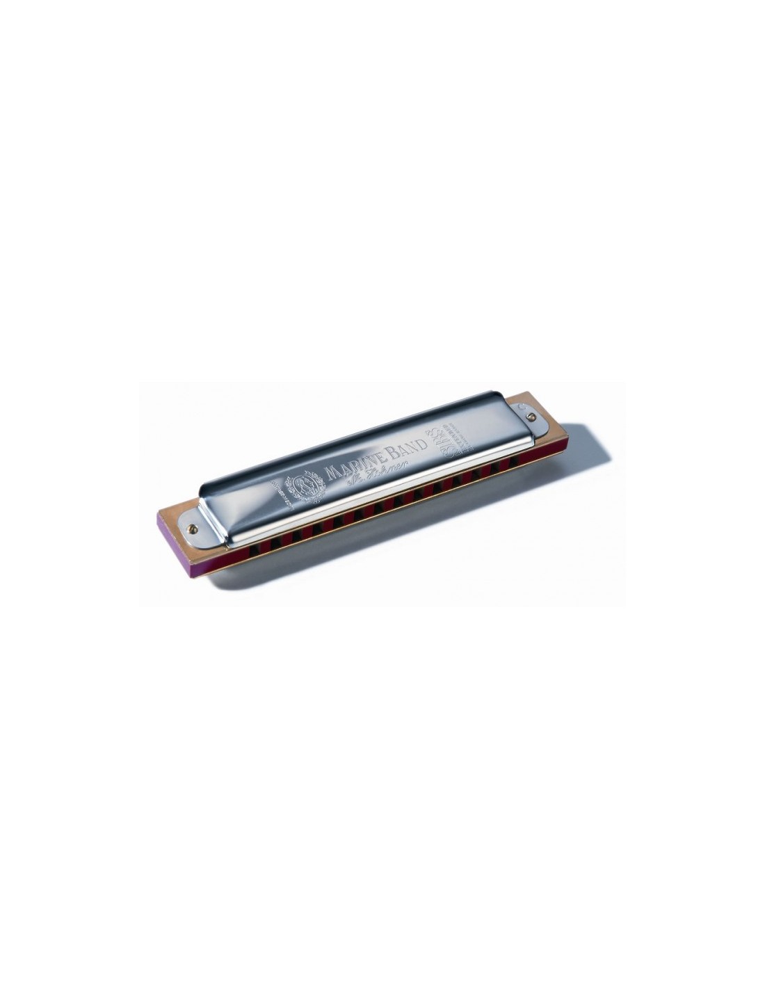 Armónica Marine band Steve Baker marca Hohner modelo 365/28-SBS (D)CaracterísticaTipo: diatónicaAfinación Richter. Cantidad de agujeros: 10Lengüetas (número, material): 20, latónLengüetas (superficie): latónLengüetas (material, espesor): latón, 0.9 mmSuperficie de la boquilla: peral, laqueado. Tonalidades: DPeine: peral, caféSuperficie del peine: laca transparente. Longitud: 10 cm.