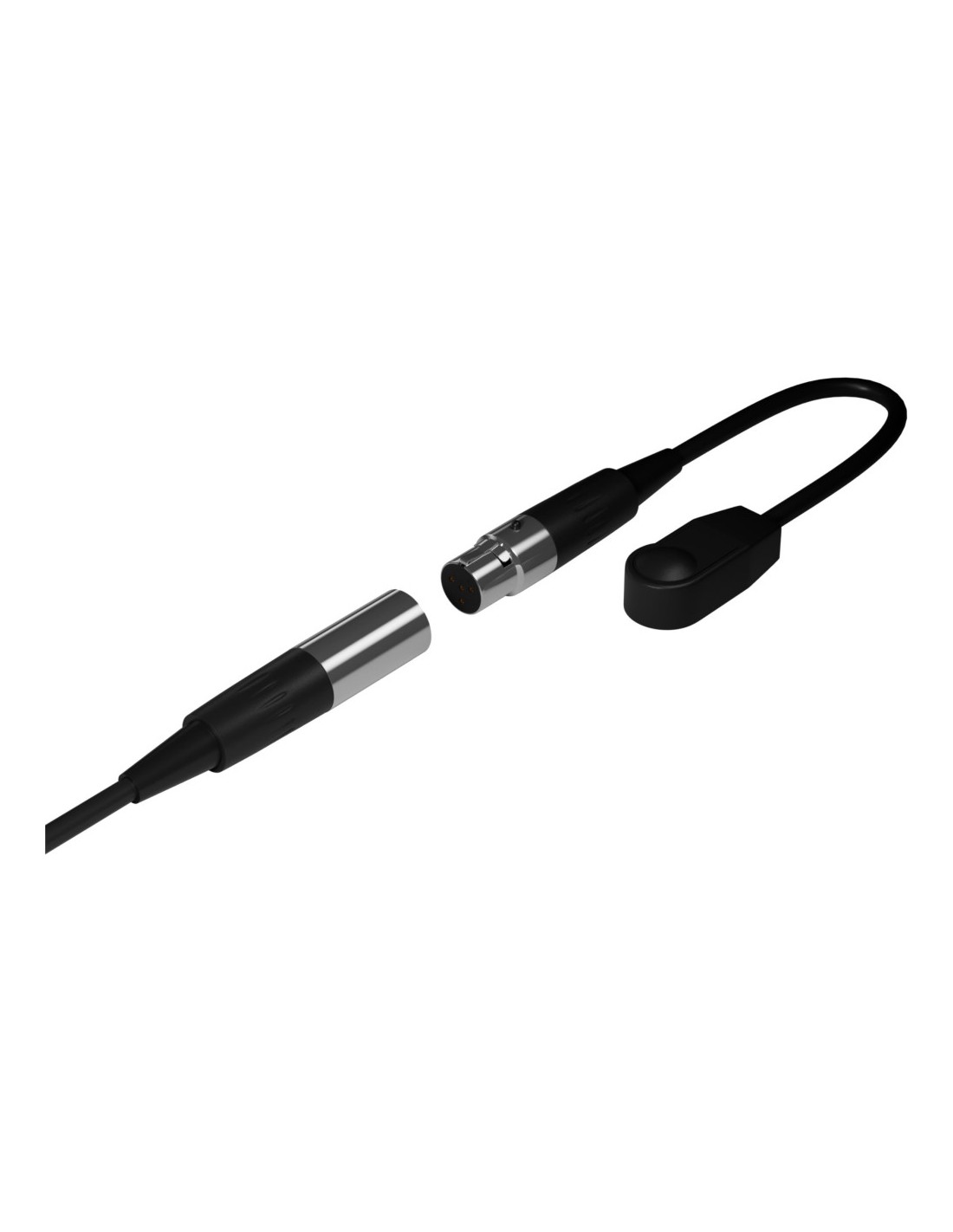 Se compone de una cápsula microfónica con 2,75m de cable negro resistente, flexible, balanceado y apantallado, y un preamplificador Phantom de ultrabajo ruido integrado en el propio conector XLR macho de tres contactos.