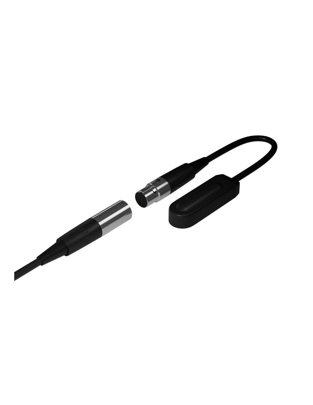 Se compone de una cápsula microfónica con 2,75 m. de cable negro resistente, flexible, balanceado y apantallado, y un preamplificador Phantom de ultrabajo ruido, integrado en el propio conector XLR3 macho y se suministra con 10 cm. de adhesivo de fijación)