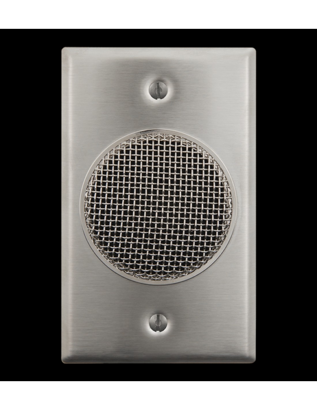 ALTAVOZ DE TECHO / SUPERFICIE AX GS1W. El GS1W es un innovador micrófono empotrable para pared o techo, diseñado para captación de sonido a distancia. Sus características incluyen un preamplificador totalmente integrado, una sensibilidad extremadamente alta de 38 milivoltios y completa inmunidad a interferencias de radiofrecuencia RF provocadas por teléfonos móviles y dispositivos GSM. La cápsula del GS1W está alojada en un soporte patentado que permite orientar el micrófono hasta un ángulo de 45 grados hacia la fuente sonora. Su diseño compacto y configuración empotrada permiten que el micrófono pase desapercibido sin comprometer la calidad del sonido. El GS1W termina en un conector de bloque terminal y se instala fácilmente en una caja estándar de una sola unidad. Se incluye una placa de montaje de 2.75? por 4.5?. El GS1W viene con acabado estándar en níquel satinado en color blanco.