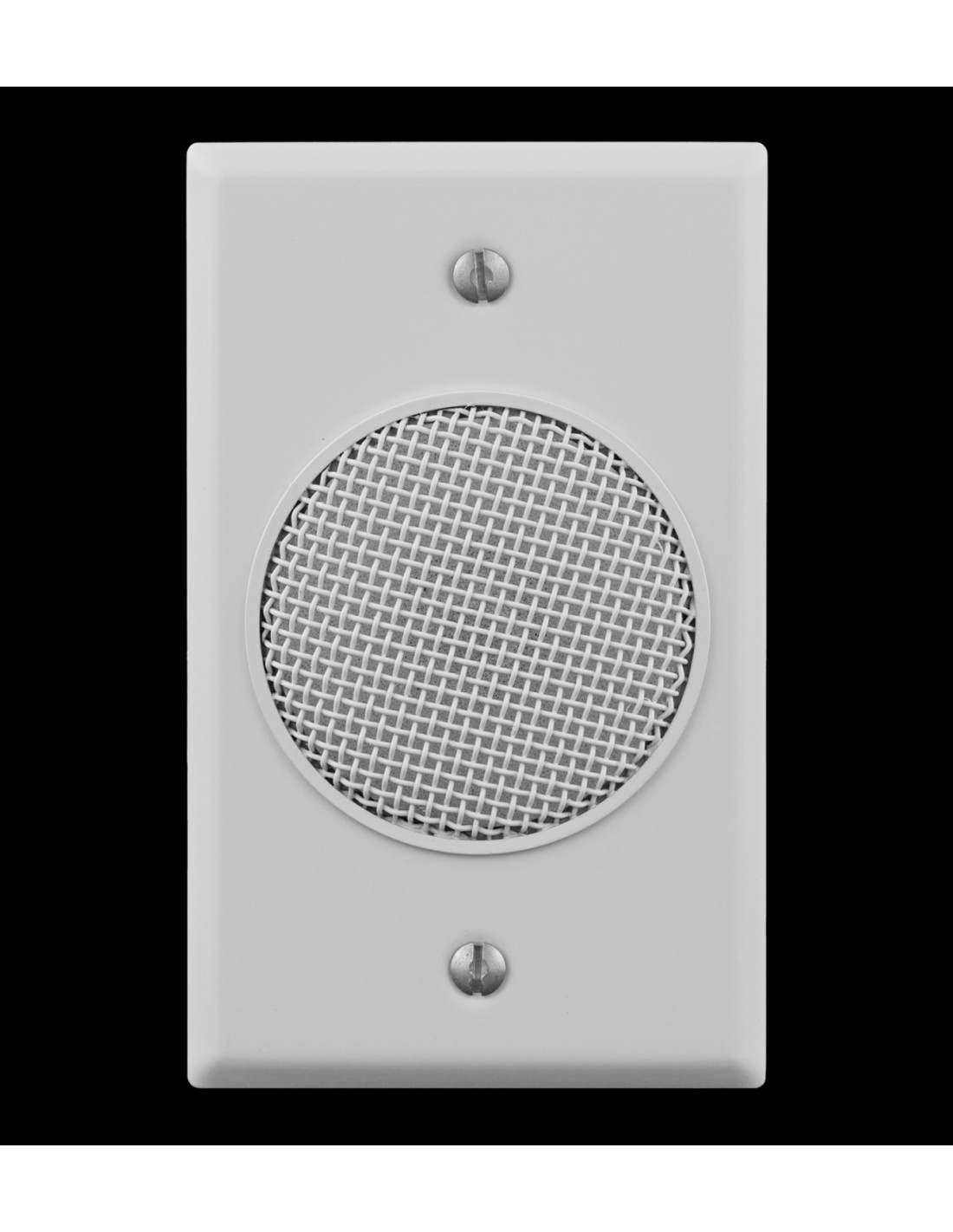 ALTAVOZ DE TECHO / SUPERFICIE AX GS1W. El GS1W es un innovador micrófono empotrable para pared o techo, diseñado para captación de sonido a distancia. Sus características incluyen un preamplificador totalmente integrado, una sensibilidad extremadamente alta de 38 milivoltios y completa inmunidad a interferencias de radiofrecuencia RF provocadas por teléfonos móviles y dispositivos GSM. La cápsula del GS1W está alojada en un soporte patentado que permite orientar el micrófono hasta un ángulo de 45 grados hacia la fuente sonora. Su diseño compacto y configuración empotrada permiten que el micrófono pase desapercibido sin comprometer la calidad del sonido. El GS1W termina en un conector de bloque terminal y se instala fácilmente en una caja estándar de una sola unidad. Se incluye una placa de montaje de 2.75? por 4.5?. El GS1W viene con acabado estándar en níquel satinado en color blanco.