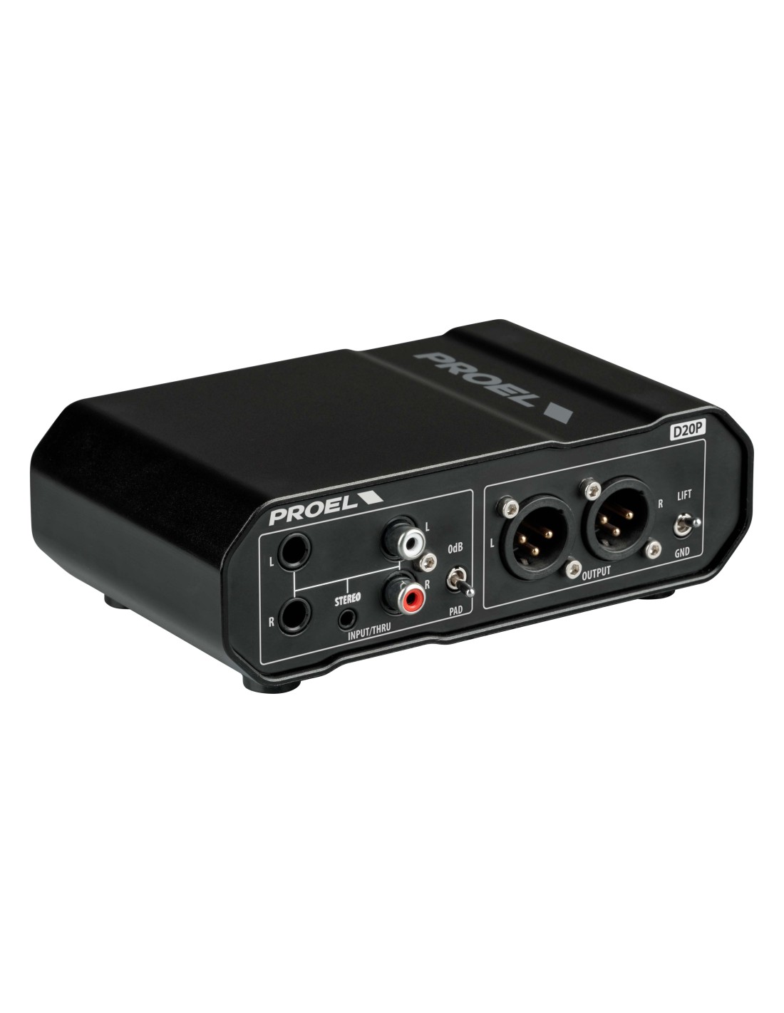 <p>Las cajas DI realizan varias funciones importantes: están diseñadas para emparejar la impedancia y balancear la señal de una guitarra, un teclado o cualquier fuente de salida de nivel de línea, así como para inyectar directamente la señal con conexiones muy largas a las entradas de micrófono XLR de una consola de mezclas.<br></p><p>El D20P es una caja directa pasiva estéreo con transformadores y no requiere ninguna alimentación externa como la alimentación fantasma o baterías para funcionar. La ventaja de un transformador es la posibilidad de evitar cualquier conexión eléctrica entre la fuente de sonido y la mesa de mezclas. Esto proporciona dos enormes beneficios: sin ruta eléctrica, se eliminan los bucles de tierra y es posible la cancelación del ruido de modo común, como el zumbido. El D20P cuenta con dos conectores jack de 1/4" para conectar un teclado estéreo, o dos RCA para conectar una consola de DJ, o un mini-jack de 3,5 mm para conectar un ordenador personal, para una flexibilidad máxima sin necesidad de adaptadores especiales.<br></p>