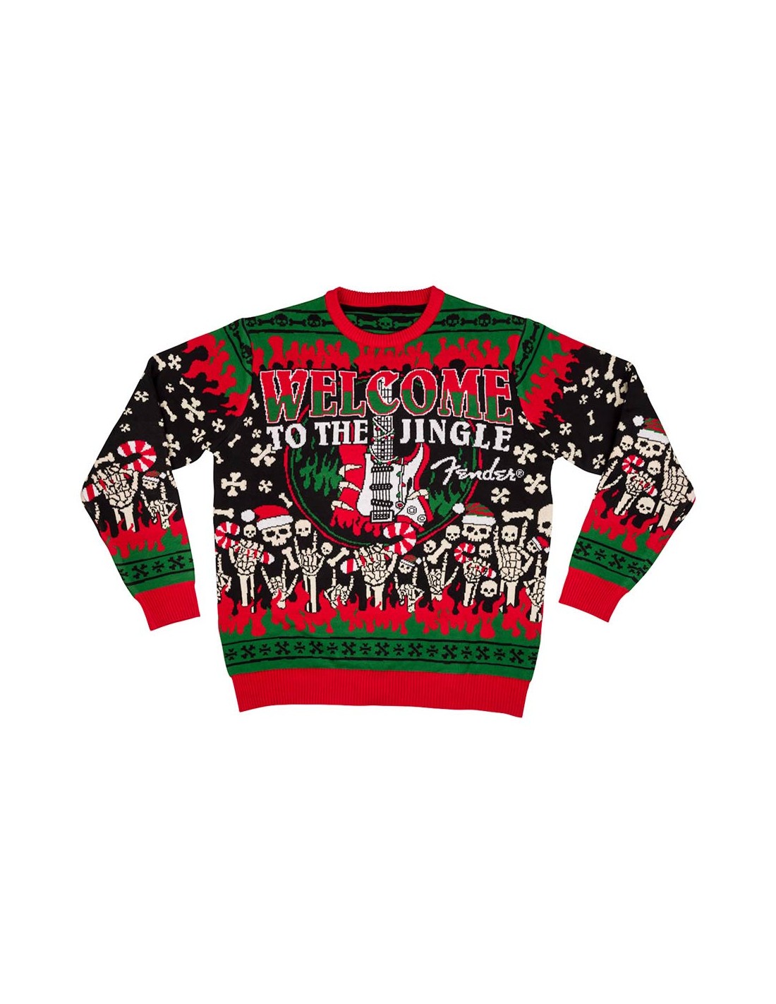 Fender's Welcome to the Jingle Ugly Christmas Sweater will be the hit of your next holiday party family gathering or gift giving rendezvous. Fender's comfy muliti colored sweater will be the talk of all your holiday events. You will be sure to win the ne