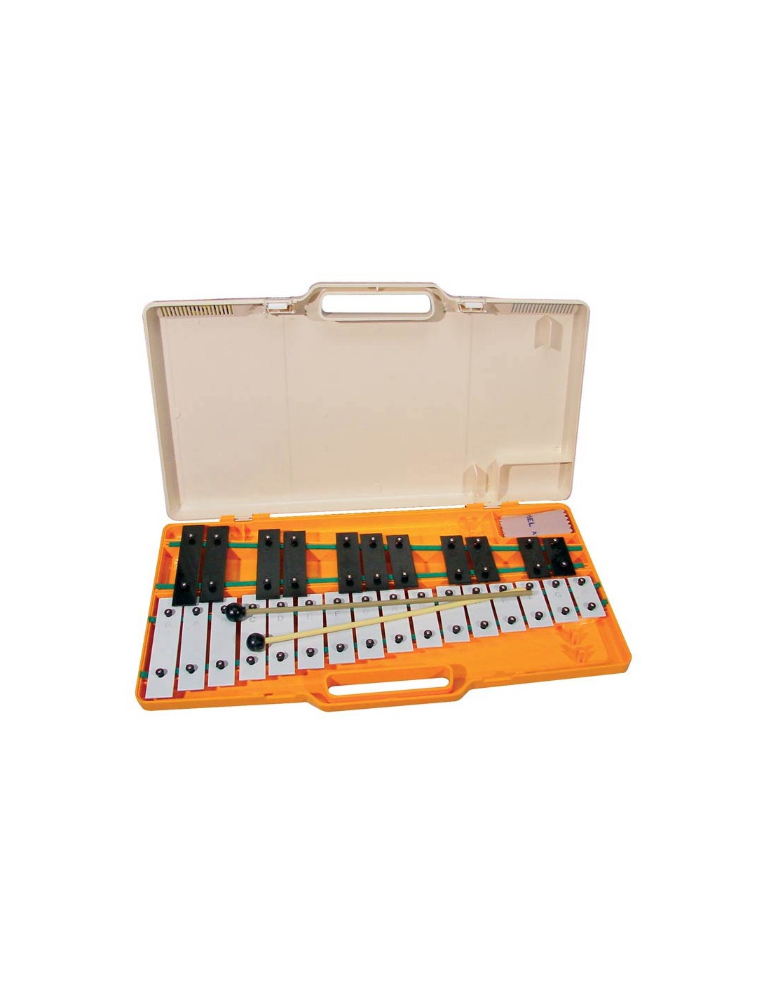 AG-27K Glockenspiel. Modelo deluxe. 27 notas. Sol-A. En estuche de colores mixtos. Con 2 pares de mazas.