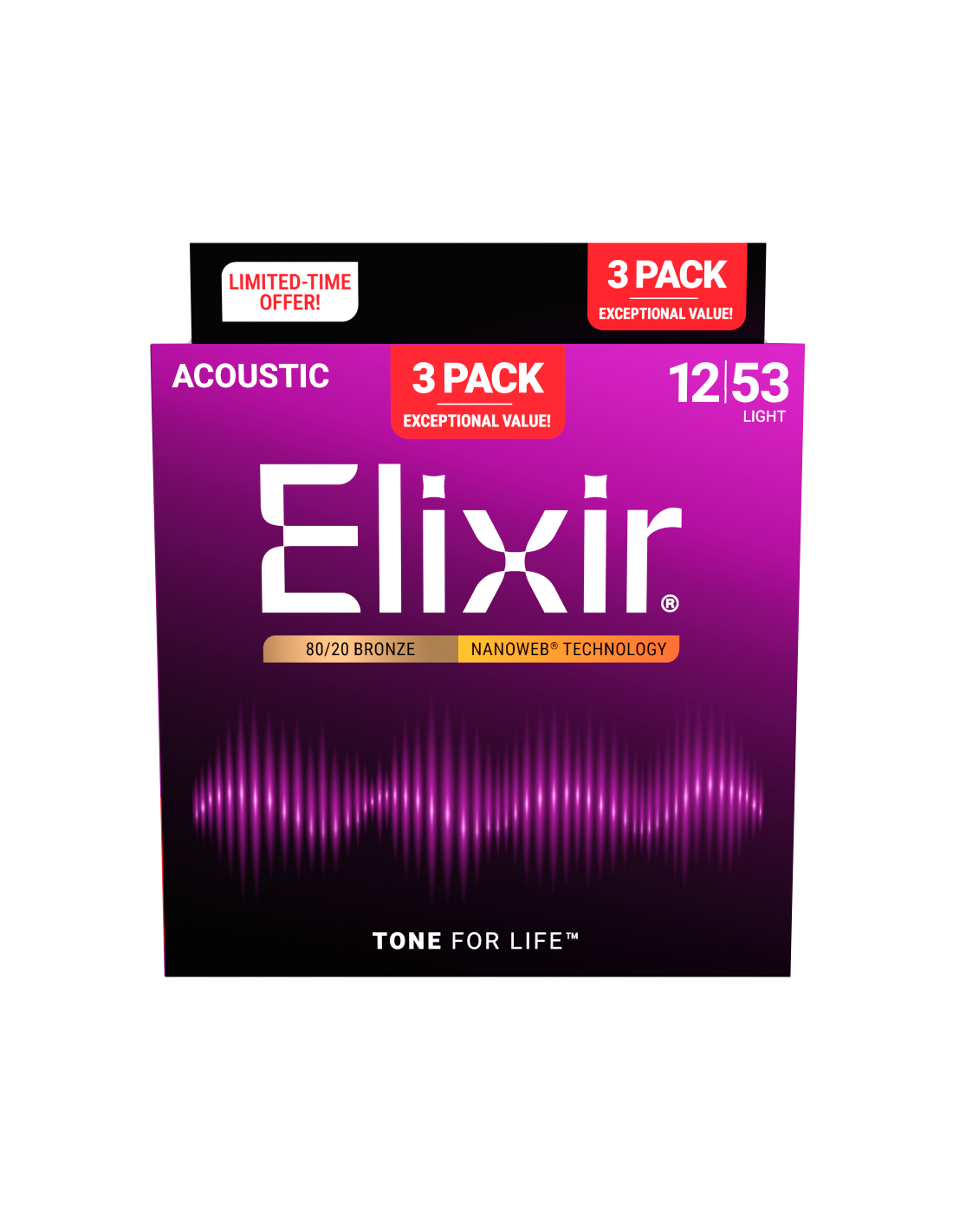 ¡Compra 2 juegos y llévate 1 más de regalo! Este pack incluye tres juegos de cuerdas Elixir Acoustic 80/20 Bronze con calibre .012 – .053, fabricadas en bronce 80/20 y recubiertas con la tecnología Nanoweb. Estas cuerdas están diseñadas para guitarristas que buscan un sonido brillante y definido, con una mayor durabilidad frente al desgaste habitual.