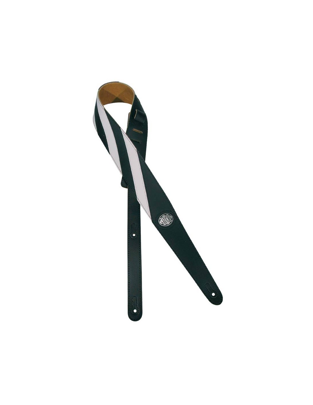 GST-217-BK Correa de guitarra. Negra y blanca. Diseño de rayas blancas.