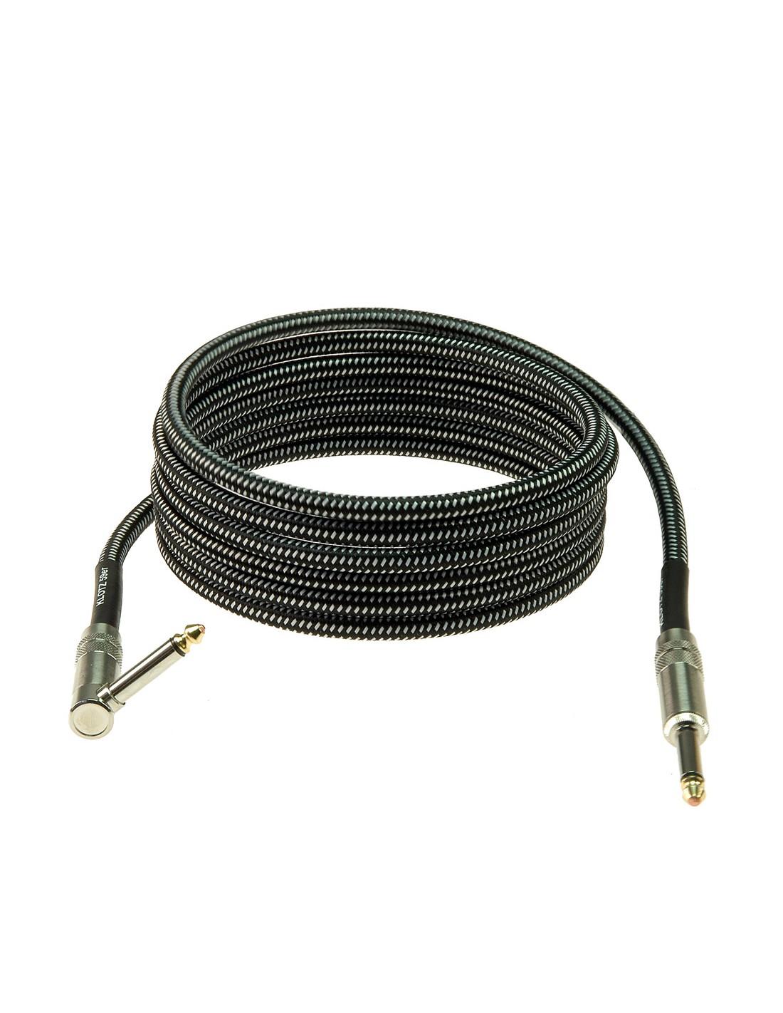 CABLE DE INSTRUMENTO Cable de instrumento- Cubierta textil antinudos black/white- Cable de PVC con espiral protectora de cobre ø7,6mm- Conexión jack Klotz de 6,35mm- Muy flexible- Jack recto/acodado- Longitud 6 metros