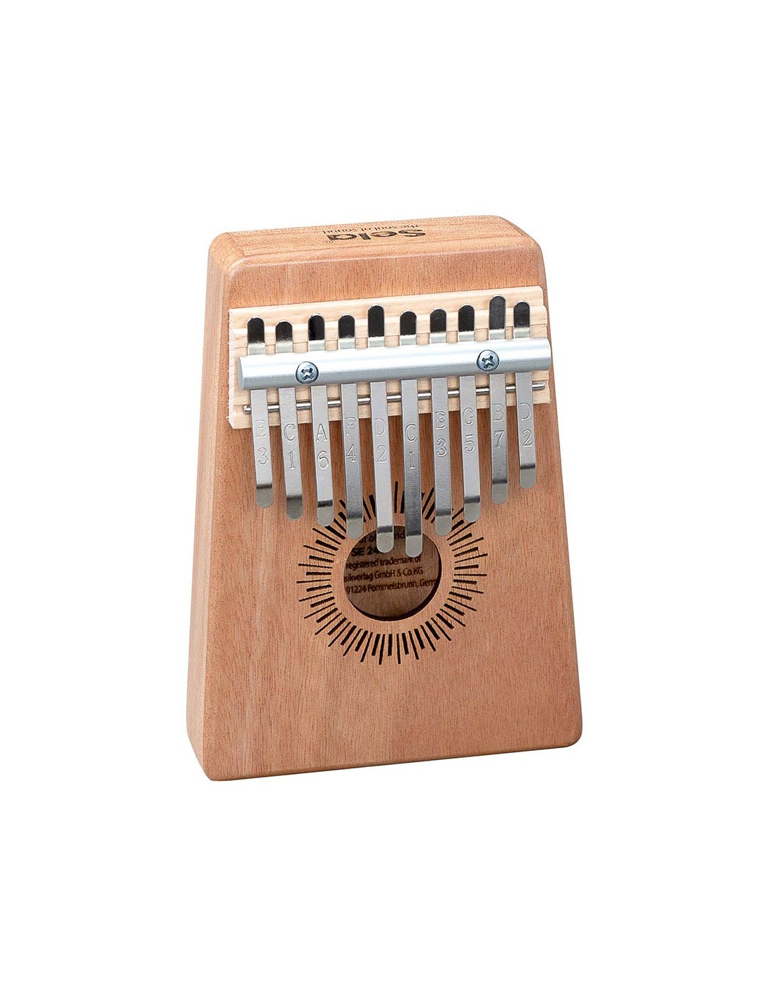 SEL240 La Kalimba 10 de Sela está fabricada con madera de caoba de alta calidad. El cuerpo amplifica las frecuencias bajas y produce así un sonido pleno claro y cálido con una resonancia fascinante. Las teclas de metal de alta calidad están afinadas en d
