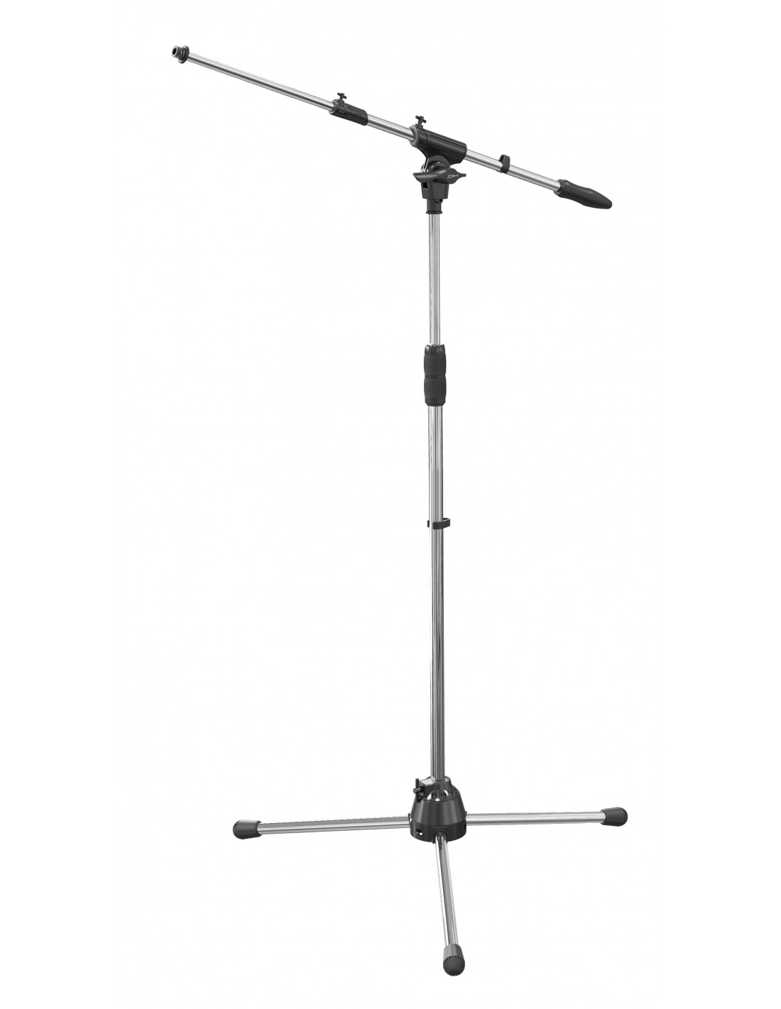 <p>Soporte de micrófono boom telescópico profesional con base de trípode, articulación superior de aluminio fundido a presión y tubos de acero grueso para una estabilidad óptima. El nuevo concepto de articulación superior presenta componentes ergonómicos y de alta calidad que aumentan la fricción y permiten ajustes precisos. También incluye un manguito central de aluminio fundido cubierto con goma "soft-grip" que permite un agarre firme para un ajuste de altura fácil y seguro. Equipado con una rosca de 3/8" con adaptador de 5/8". Acabado cromado.</p>