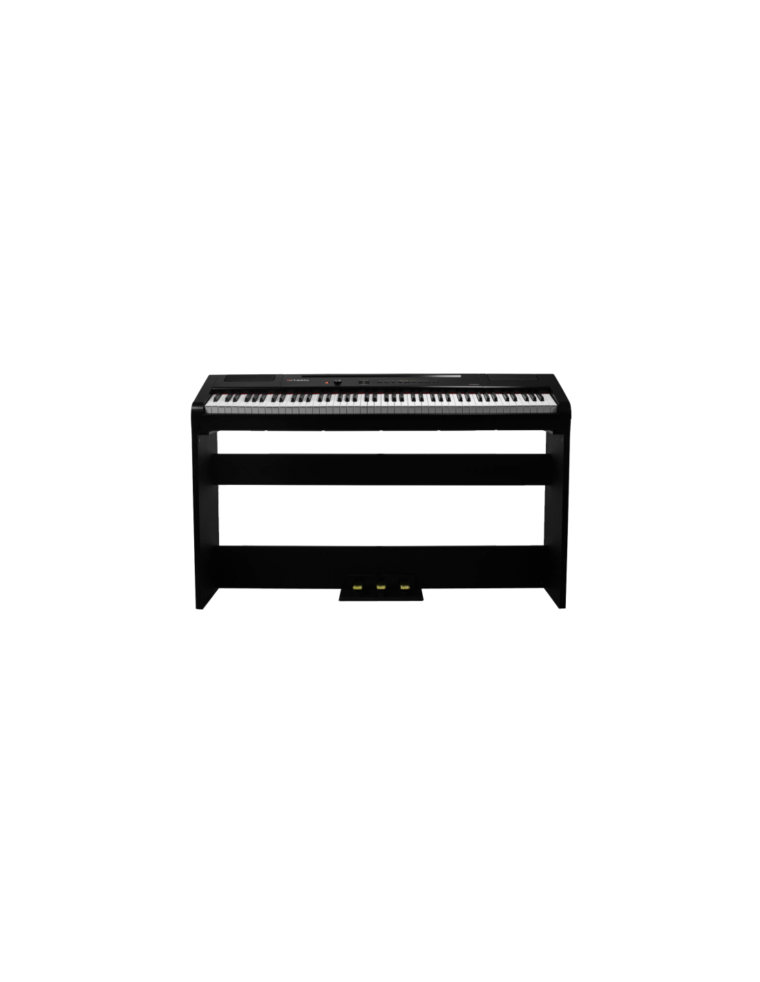 HARMONY 88 Teclas HAMMER contrapesadas. Polifonía: 64 notas. Voces: 16. Demo: 16 canciones. 6 niveles de Touch. Efectos: reverb chorus bass EQ Treble EQ. Controles: volumen master demo reverb chorus y metrónomo. Control de voces: layer layer level sensib
