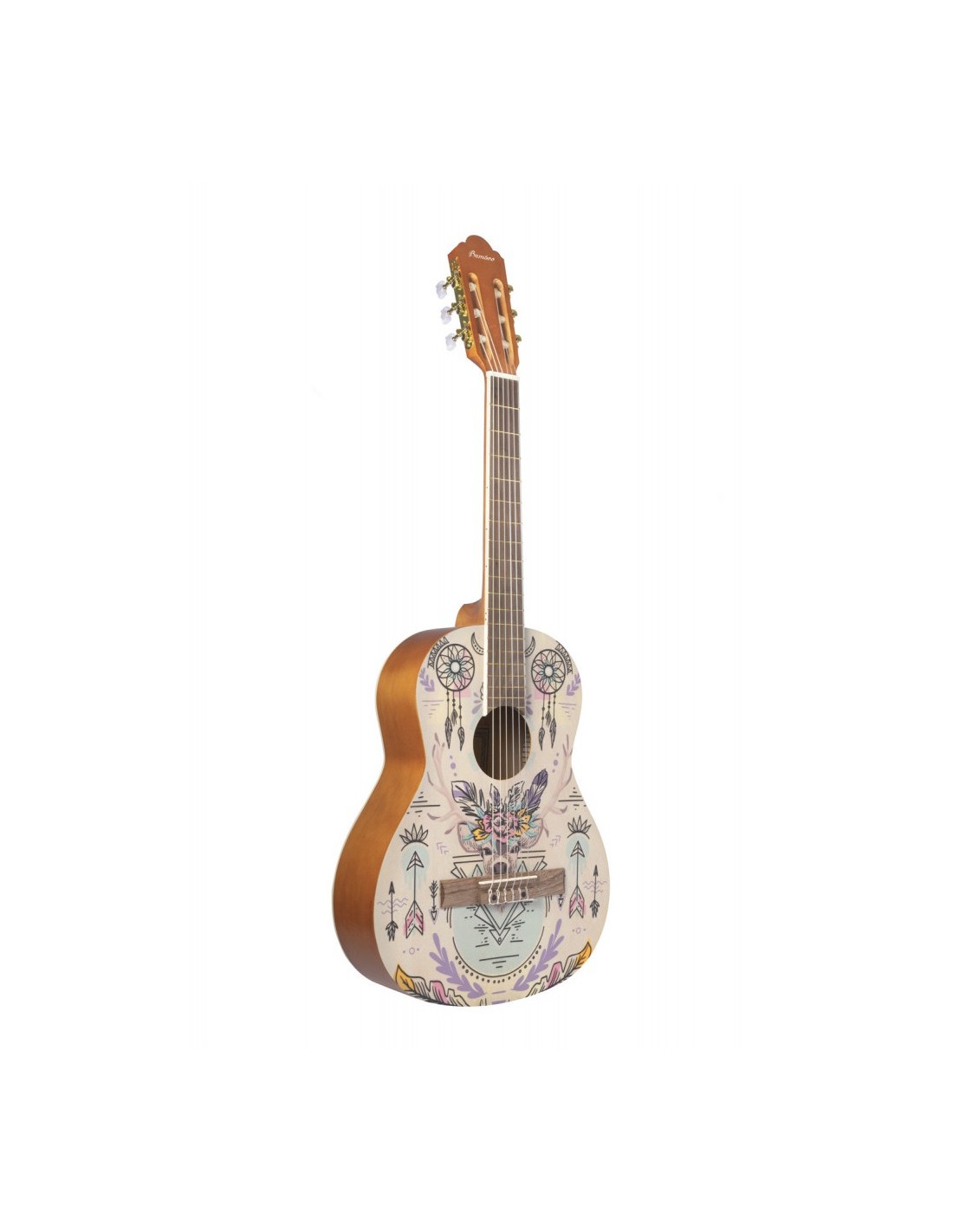 La guitarra clásica Bamboo BG39-ND Indie es un instrumentomusical fabricado con materiales de alta calidad y diseñado para satisfacer lasnecesidades de los músicos que buscan una guitarra con un estilo único einspirado en la música Indie. Está construida con un cuerpo y una tapa detilo, lo que le otorga una resonancia cálida y suave al sonido, lo que la haceideal para interpretar piezas clásicas, folklóricas y pop.