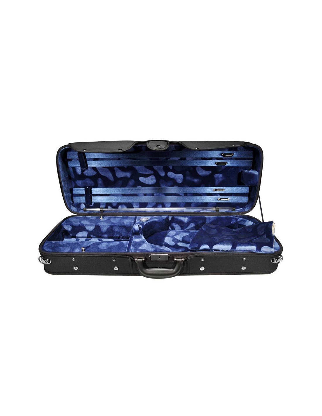 47 serie viola case specifications:Viola oblong wooden case.Fits various sizes (adjustable)Arched top.Cordura exterior fabric.Printed silk plush interior fabric.Half lining. Suspension foam. String tube 4 bow holders.2 accessory boxes. Protection blanket