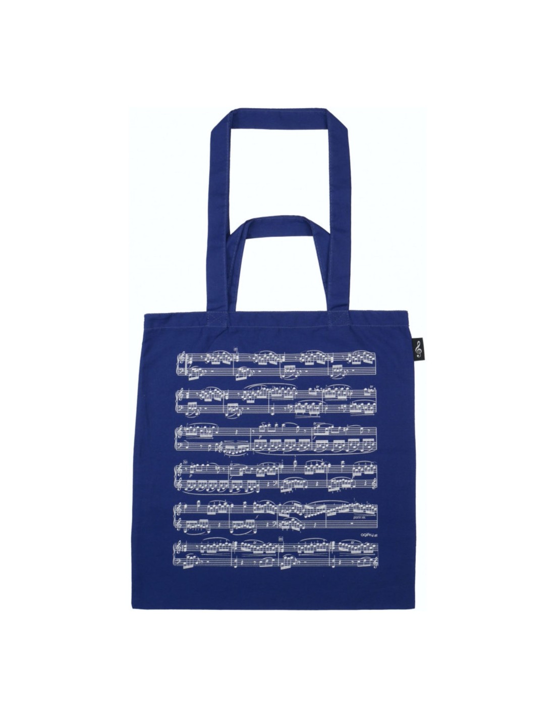 Bolsa asa azulAdorno partituras en blancoImpresión en ambas caras40x37 cms