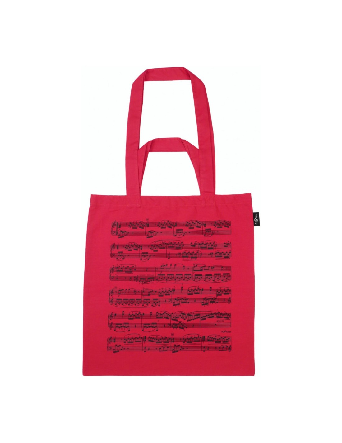 Bolsa asa roja tipo Tote BagAdorno partituras en negroImpresión en ambas caras40x37 cms