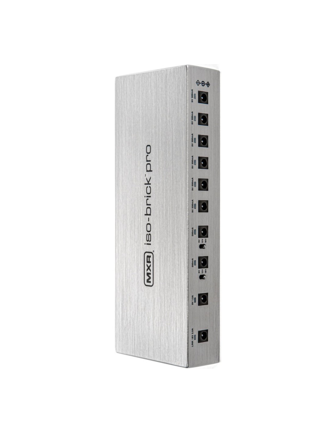 La fuente de alimentación MXR Iso-Brick Pro M242 ofrece diez salidas completamente aisladas, diseñadas para alimentar desde pedales analógicos de baja demanda hasta unidades digitales de alta potencia. Su diseño compacto permite su instalación debajo de la mayoría de las pedalboards estándar, facilitando una configuración ordenada y eficiente.