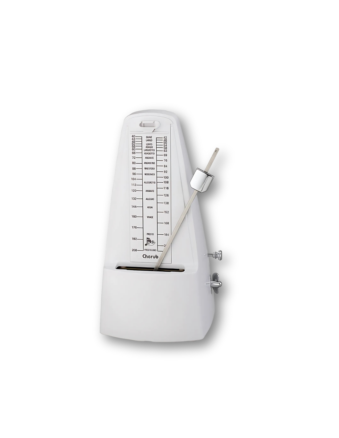 El metrónomo mecánico Cherub WSM-305 con campana está diseñado para ofrecer una experiencia de práctica precisa, fiable y totalmente acústica. Con un rango de tempo de 40 a 208 bpm y patrones de compás que incluyen 0, 2, 3, 4 y 6 tiempos, es una herramienta versátil recomendada por profesionales y apta para músicos de todos los niveles.