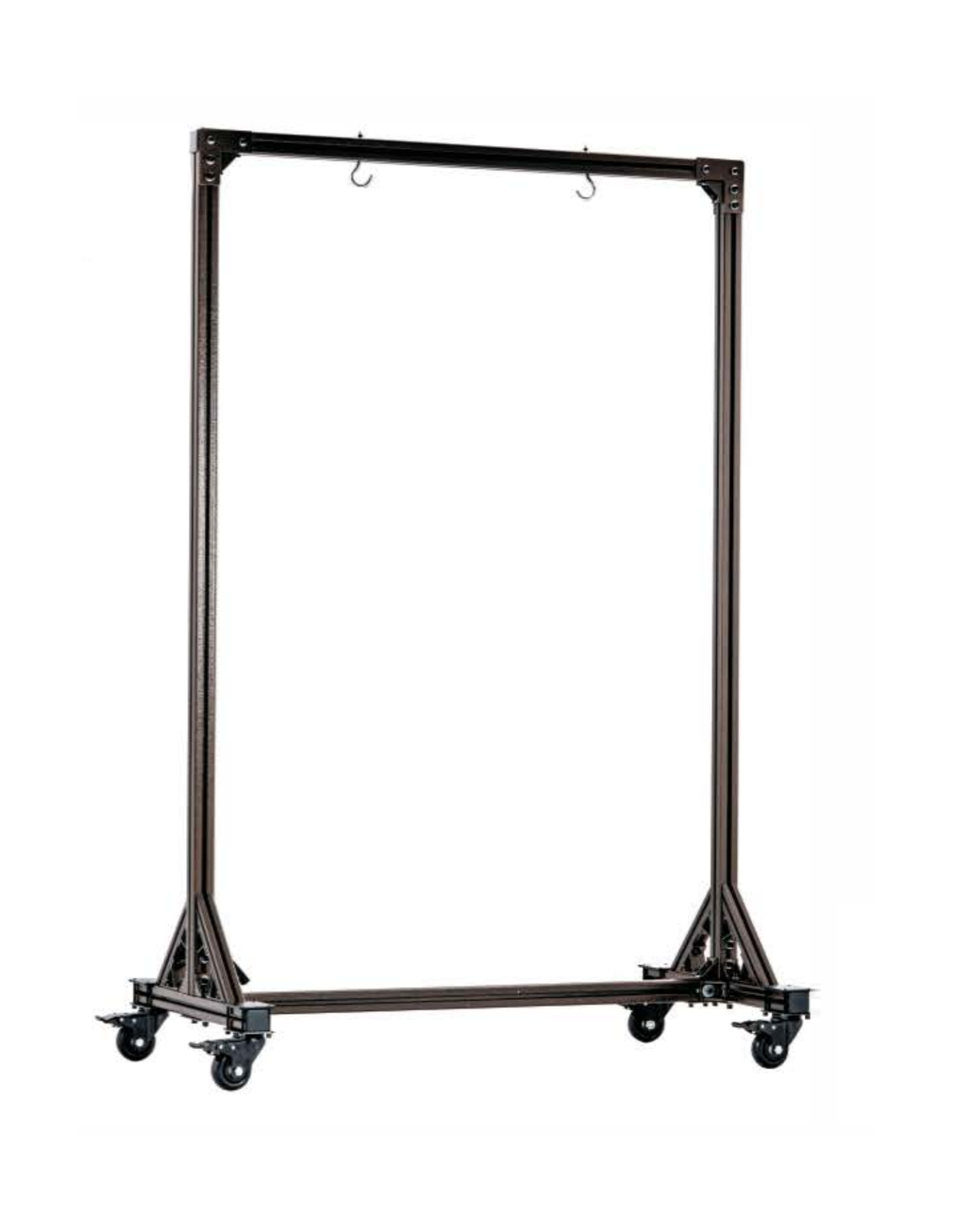 JBGS80B SOPORTE JINBAO DE GONG ORQUESTA Robusto. Cuadradillo de 30 mm. 2 Ganchos fijos a 500 mm. en la barra superior. 1 Gancho fijo en cada lateral. 4 Ruedas de Ø 75 mm. con bloqueo. Medidas: 1080 x 1680 mm.