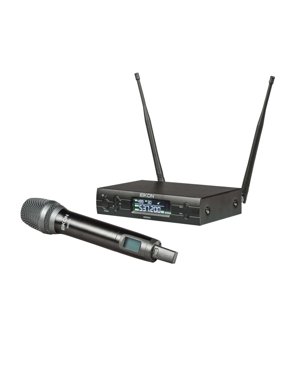 <p>El nuevo EIKON WM900 es una serie profesional UHF TRUE DIVERSITY, diseñada para músicos, presentadores y profesionales del entretenimiento, con un presupuesto ajustado.</p><p>Su diseño fue desarrollado íntegramente por EIKON para garantizar la máxima fiabilidad y durabilidad.</p><p>El receptor y el transmisor de mano están fabricados íntegramente en metal, mientras que el transmisor de petaca está fabricado en PP de alta densidad, combinando resistencia y máxima ligereza.</p><p>El sistema de micrófono inalámbrico WM900 ofrece 5 combinaciones diferentes: receptor monocanal, receptor bicanal, transmisor de mano y transmisor de petaca con micrófono de diadema y de solapa.</p><p>El sistema está disponible en 3 bandas de frecuencia preestablecidas que pueden utilizarse simultáneamente: 512-568 MHz; 606-614 MHz; 614-670 MHz.</p><p>Cada configuración incluye un robusto estuche de transporte de ABS.</p><p><br></p><ul style="border: 0px; font-variant-numeric: inherit; font-variant-east-asian: inherit; font-variant-alternates: inherit; font-variant-position: inherit; font-variant-emoji: inherit; font-stretch: inherit; font-size: 16px; line-height: inherit; font-family: Roboto; font-optical-sizing: inherit; font-size-adjust: inherit; font-kerning: inherit; font-feature-settings: inherit; font-variation-settings: inherit; font-language-override: inherit; vertical-align: baseline; list-style: none; color: rgb(23, 22, 23); margin-bottom: 30px !important; margin-right: 0px !important; margin-left: 30px !important; padding: 0px !important;"><li style="margin: 0px !important; padding: 0px !important; border: 0px !important; font-style: inherit !important; font-variant: inherit !important; font-stretch: inherit !important; line-height: 26px !important; font-family: inherit !important; font-optical-sizing: inherit !important; font-size-adjust: inherit !important; font-kerning: inherit !important; font-feature-settings: inherit !important; font-variation-settings: inherit !important; font-language-override: inherit !important; vertical-align: baseline !important; list-style: outside disc !important;">True Diversity Receiver</li><li style="margin: 0px !important; padding: 0px !important; border: 0px !important; font-style: inherit !important; font-variant: inherit !important; font-stretch: inherit !important; line-height: 26px !important; font-family: inherit !important; font-optical-sizing: inherit !important; font-size-adjust: inherit !important; font-kerning: inherit !important; font-feature-settings: inherit !important; font-variation-settings: inherit !important; font-language-override: inherit !important; vertical-align: baseline !important; list-style: outside disc !important;">PLL Tuning</li><li style="margin: 0px !important; padding: 0px !important; border: 0px !important; font-style: inherit !important; font-variant: inherit !important; font-stretch: inherit !important; line-height: 26px !important; font-family: inherit !important; font-optical-sizing: inherit !important; font-size-adjust: inherit !important; font-kerning: inherit !important; font-feature-settings: inherit !important; font-variation-settings: inherit !important; font-language-override: inherit !important; vertical-align: baseline !important; list-style: outside disc !important;">50 meters range in open space</li><li style="margin: 0px !important; padding: 0px !important; border: 0px !important; font-style: inherit !important; font-variant: inherit !important; font-stretch: inherit !important; line-height: 26px !important; font-family: inherit !important; font-optical-sizing: inherit !important; font-size-adjust: inherit !important; font-kerning: inherit !important; font-feature-settings: inherit !important; font-variation-settings: inherit !important; font-language-override: inherit !important; vertical-align: baseline !important; list-style: outside disc !important;">BNC antenna OUTPUTS</li><li style="margin: 0px !important; padding: 0px !important; border: 0px !important; font-style: inherit !important; font-variant: inherit !important; font-stretch: inherit !important; line-height: 26px !important; font-family: inherit !important; font-optical-sizing: inherit !important; font-size-adjust: inherit !important; font-kerning: inherit !important; font-feature-settings: inherit !important; font-variation-settings: inherit !important; font-language-override: inherit !important; vertical-align: baseline !important; list-style: outside disc !important;">Cardioid handheld microphone transmitter</li><li style="margin: 0px !important; padding: 0px !important; border: 0px !important; font-style: inherit !important; font-variant: inherit !important; font-stretch: inherit !important; line-height: 26px !important; font-family: inherit !important; font-optical-sizing: inherit !important; font-size-adjust: inherit !important; font-kerning: inherit !important; font-feature-settings: inherit !important; font-variation-settings: inherit !important; font-language-override: inherit !important; vertical-align: baseline !important; list-style: outside disc !important;">Bodypack transmitter with 3 pole mini-XLR plug</li><li style="margin: 0px !important; padding: 0px !important; border: 0px !important; font-style: inherit !important; font-variant: inherit !important; font-stretch: inherit !important; line-height: 26px !important; font-family: inherit !important; font-optical-sizing: inherit !important; font-size-adjust: inherit !important; font-kerning: inherit !important; font-feature-settings: inherit !important; font-variation-settings: inherit !important; font-language-override: inherit !important; vertical-align: baseline !important; list-style: outside disc !important;">headset and lavalier mics are included</li><li style="margin: 0px !important; padding: 0px !important; border: 0px !important; font-style: inherit !important; font-variant: inherit !important; font-stretch: inherit !important; line-height: 26px !important; font-fam