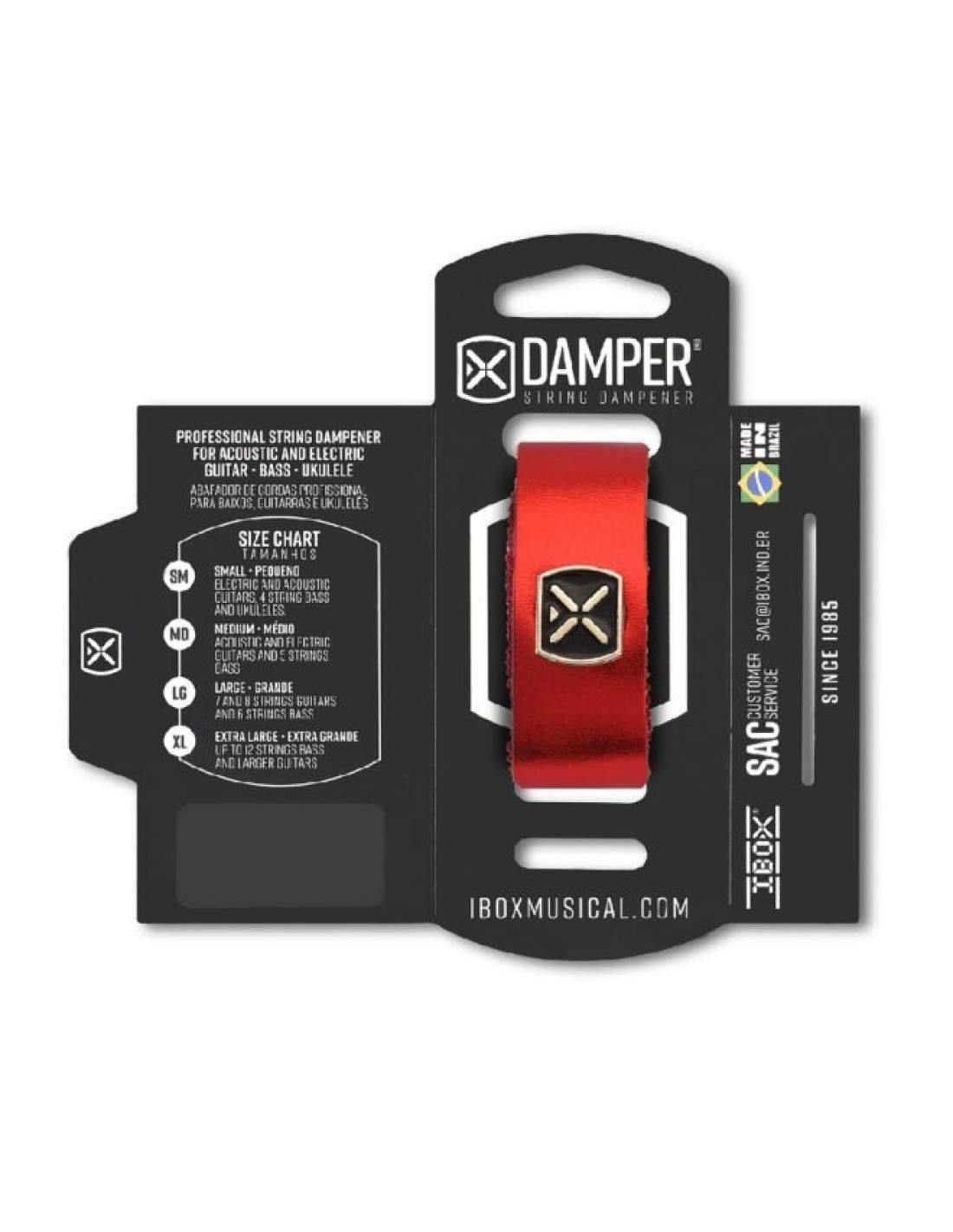 El amortiguador de cuerdas Ibox DMMD04 Medium en acabado piel metálica roja está diseñado para ofrecer un control preciso de las vibraciones y resonancias no deseadas en instrumentos de cuerda. Su tamaño MD – Medio lo hace adecuado para guitarras, guitarras de 5 cuerdas y bajos, proporcionando un ajuste equilibrado que contribuye a una ejecución más limpia y definida.