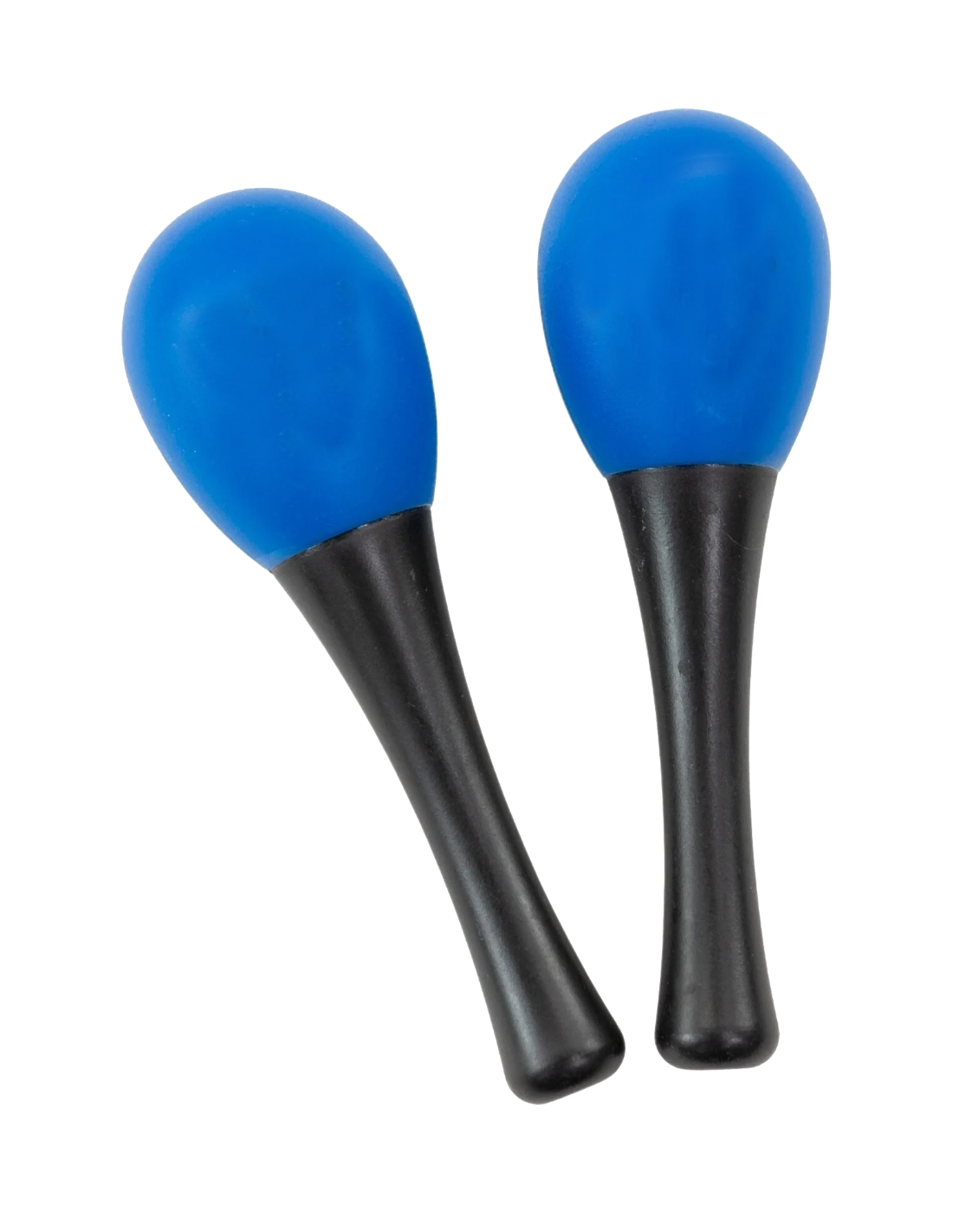 M011-1 PAR DE MARACAS DE PLÁSTICO Azul con mango negro. Longitud : 10cm.