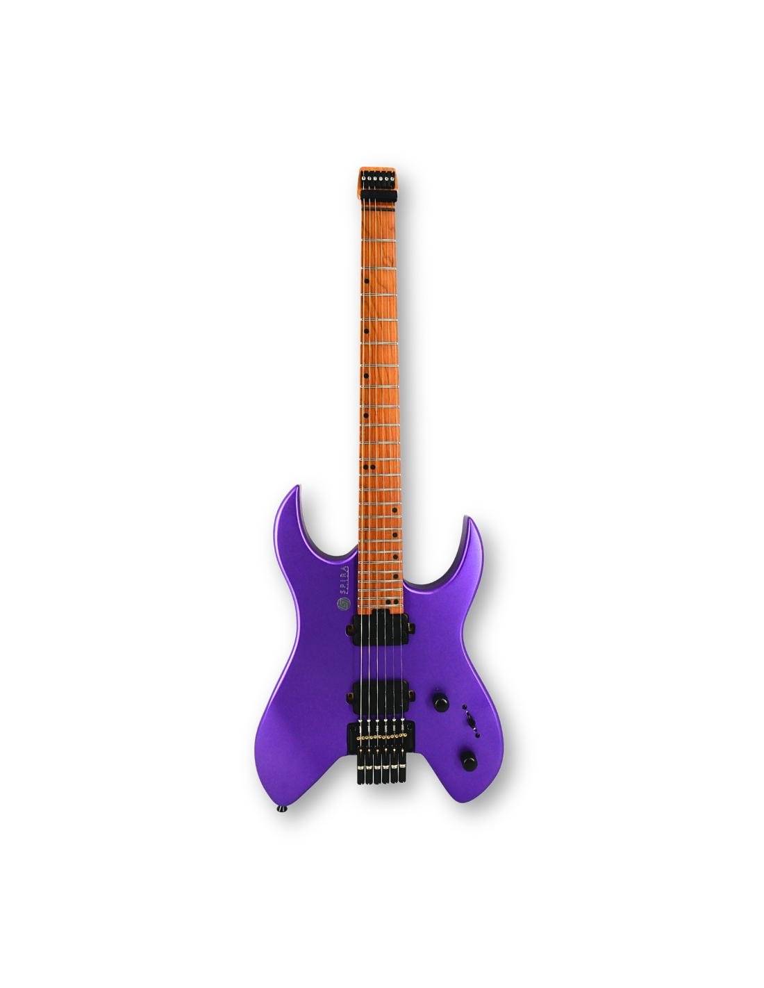 Está equipada con pastillas HH Spira Villain Custom Made con salida de 12k e imán cerámico, ofreciendo una señal potente, comprimida y definida, especialmente adecuada para estilos modernos como metal, djent o fusión, donde se requiere claridad en alta ganancia. El puente fijo headless mejora la estabilidad de afinación y facilita el cambio de cuerdas. La configuración de 1 volumen y 1 tono permite un control directo. Su acabado Púrpura junto con el hardware Negro/Dorado aporta una estética moderna y consistente. Incluye cable jack de conexión y llave de ajuste.