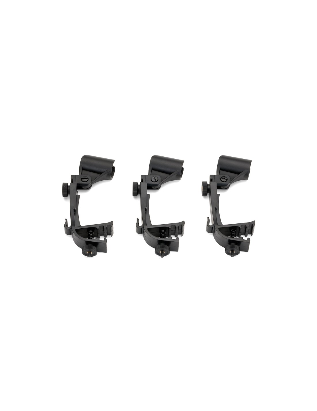 PINZA PARA MICRÓFONO PERCUSIÓN Soportes pinza para aros de batería para la mayor parte de micros de batería. Altura y orientación ajustable. Pack de 3 unidades.