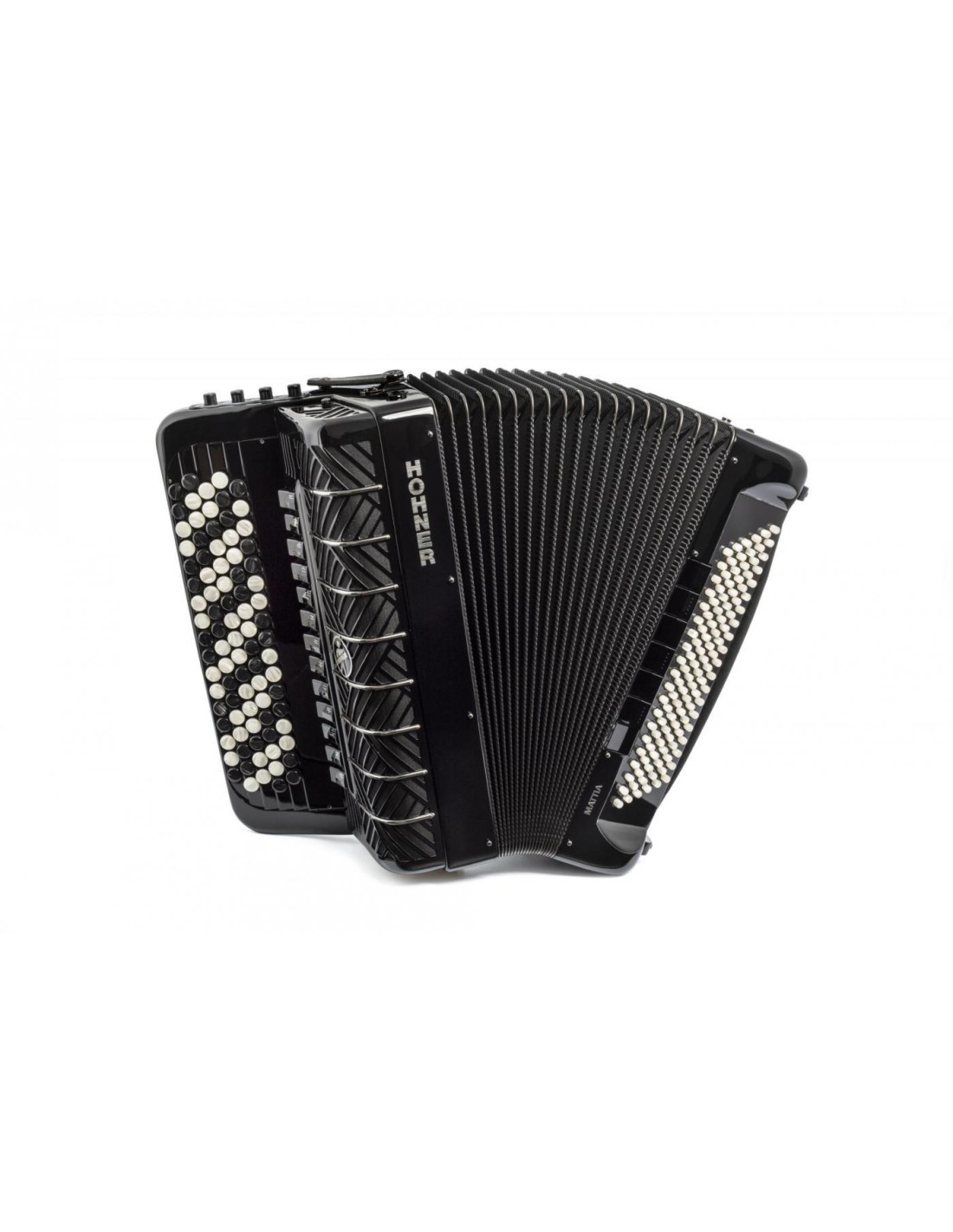 ACORDEON DE BOTONES CROMATICO Desde Musette francés hasta Folk ruso, el HOHNER MATTIA IV 120 Button está hecho para todos los músicos avanzados y profesionales. Su diseño de acordeón cassotto en combinación con el sistema acústico de ángulo continuo, ofrece una experiencia de sonido única para el público y el intérprete. Nuestros registros de mentón HOHNER, fabricados en Trossingen, hacen que tocar el MATTIA sea muy cómodo gracias especialmente a la opción de cambio dual. C-stepped, color negro.