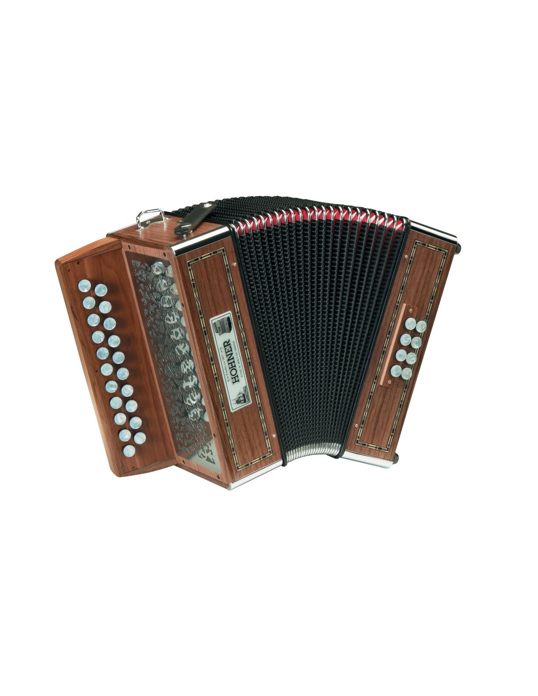 ACORDEON DE BOTONES DIATONICO Línea Folk. Con nuestro hermoso Morgane, nombrado en homenaje a la encantadora saga del Rey Arturo, tienes el compañero ideal si deseas explorar el mundo del folclore galés, bretón y francés. Con su sonido distintivo y diseño hermoso, el Morgane es la elección correcta para músicos avanzados y profesionales. Acordeón diatónico, 42 notas, 21 botones, 2 voces, afinación Sol/Do, 8 bajos, 5 voces en el bajo. Dimensiones 28,5 x 15,5 cm., peso 3,3 kg, color madera natural. Incluye correas estándar y maleta de cuero.