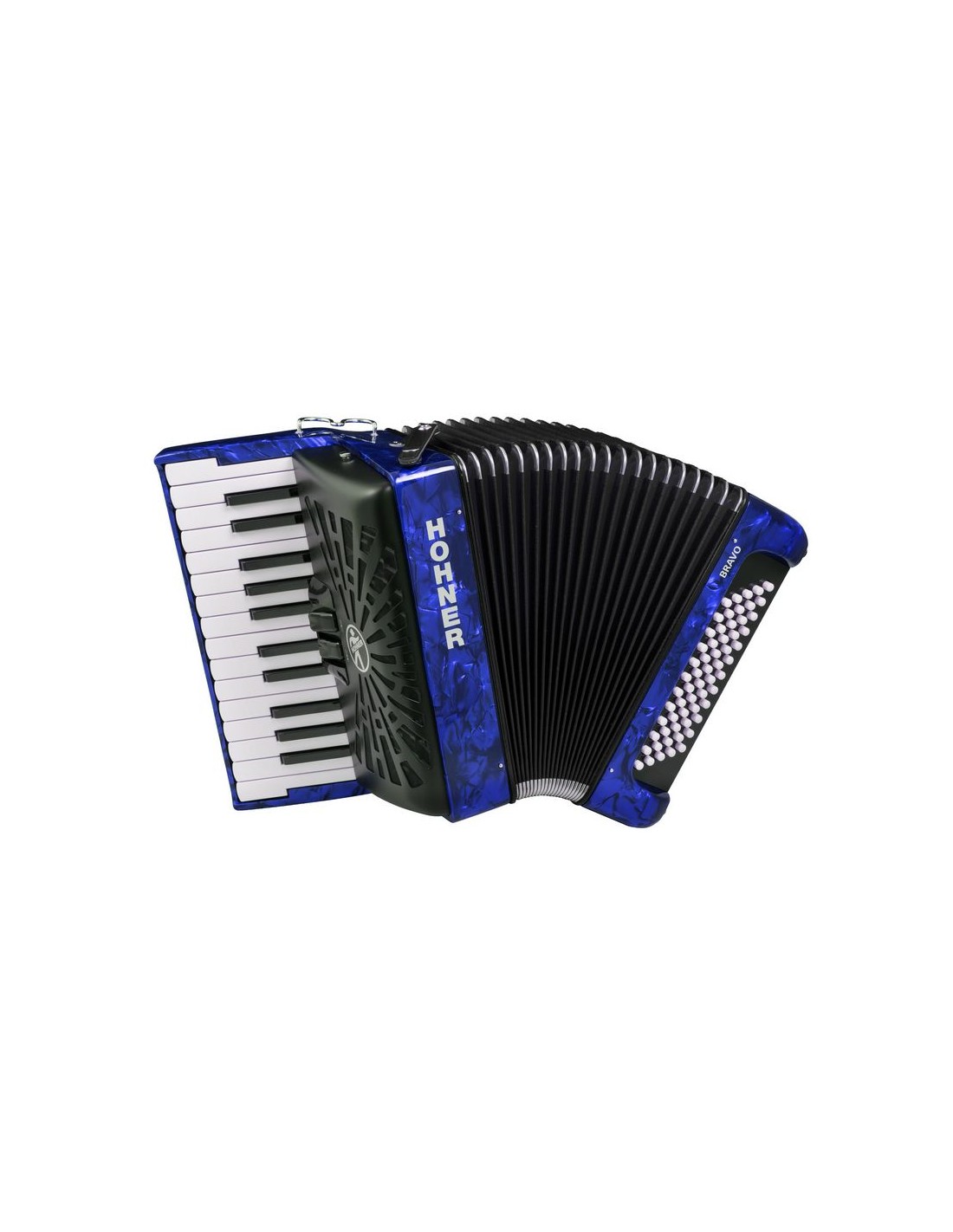 ACORDEON DE PIANO CROMATICO Nuevo modelo 2019. Fuelle en color negro, teclado con sistema SILENTKEY, mecanismo de bajos optimizado, nuevos botones de registro, funda mejorada con asas ergonómicas. 60 bajos, peso 5,1 Kg, 2 registros en el teclado de 26 teclas, 4 voces, correa y funda incluidas. Color azul.