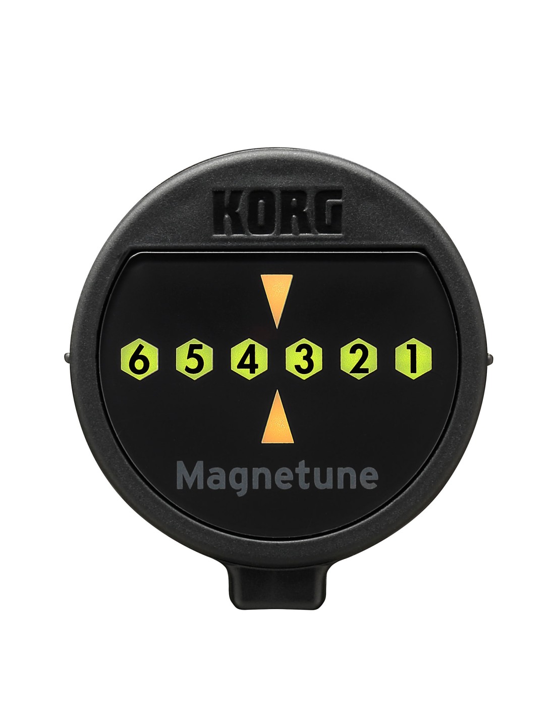 AFINADOR CROMÁTICO Afinador Korg Magnetune. El Magnetune se sujeta magnéticamente directamente al clavijero y afina tuguitarra. Déjalo en tu guitarra para afinar fácilmente mientras tocas, sujétalo a tu atril, o simplemente llévalo en el bolsillo. Escala: 12-notas temperamento igual. Rango de afinación (onda sinusoidal): E2 (82.41 Hz) ? E7 (2637.02 Hz). Precisión de Detección: +/- 1 centésima. Tono de Referencia: 440 Hz. Dimensiones: 33 x 35 x 13 mm. Peso: 11 g.