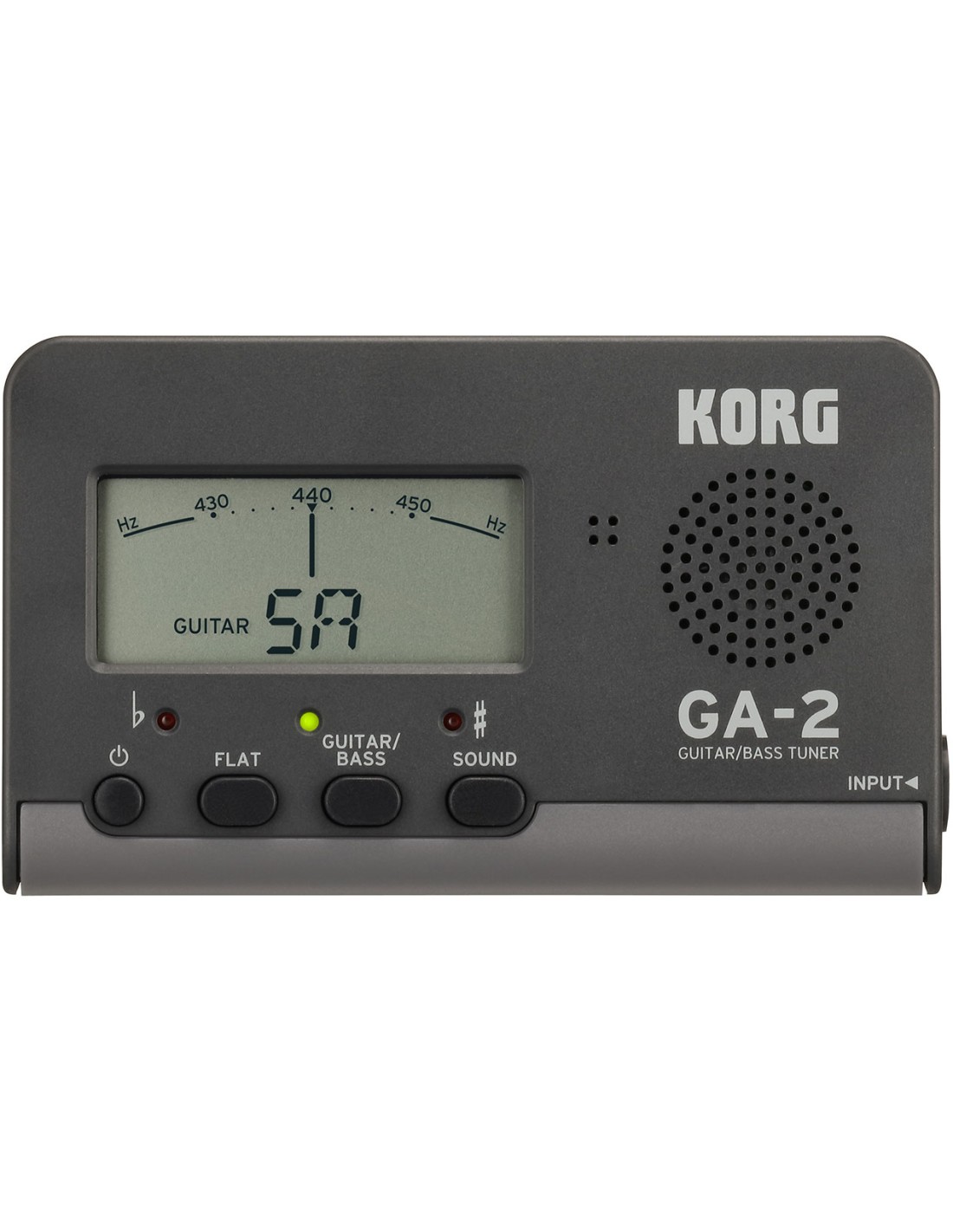 Continuando con el elegante diseño que aporta su sencilla interfaz, la pantalla para las notas ha sido aumentada de tamaño y el indicador es ahora incluso más visible. Los modos exclusivos para guitarra y bajos convierten al GA-2 en una herramienta indispensable no solo para principiantes, sino también para cualquier tipo de intérprete, sea cual sea su nivel. El GA-2 es un afinador estable en cualquier situación, desde la práctica en casa al uso en estudio o en directo, y ofrece la precisión, sensibilidad, y facilidad de uso que esperas de un afinador KORG.