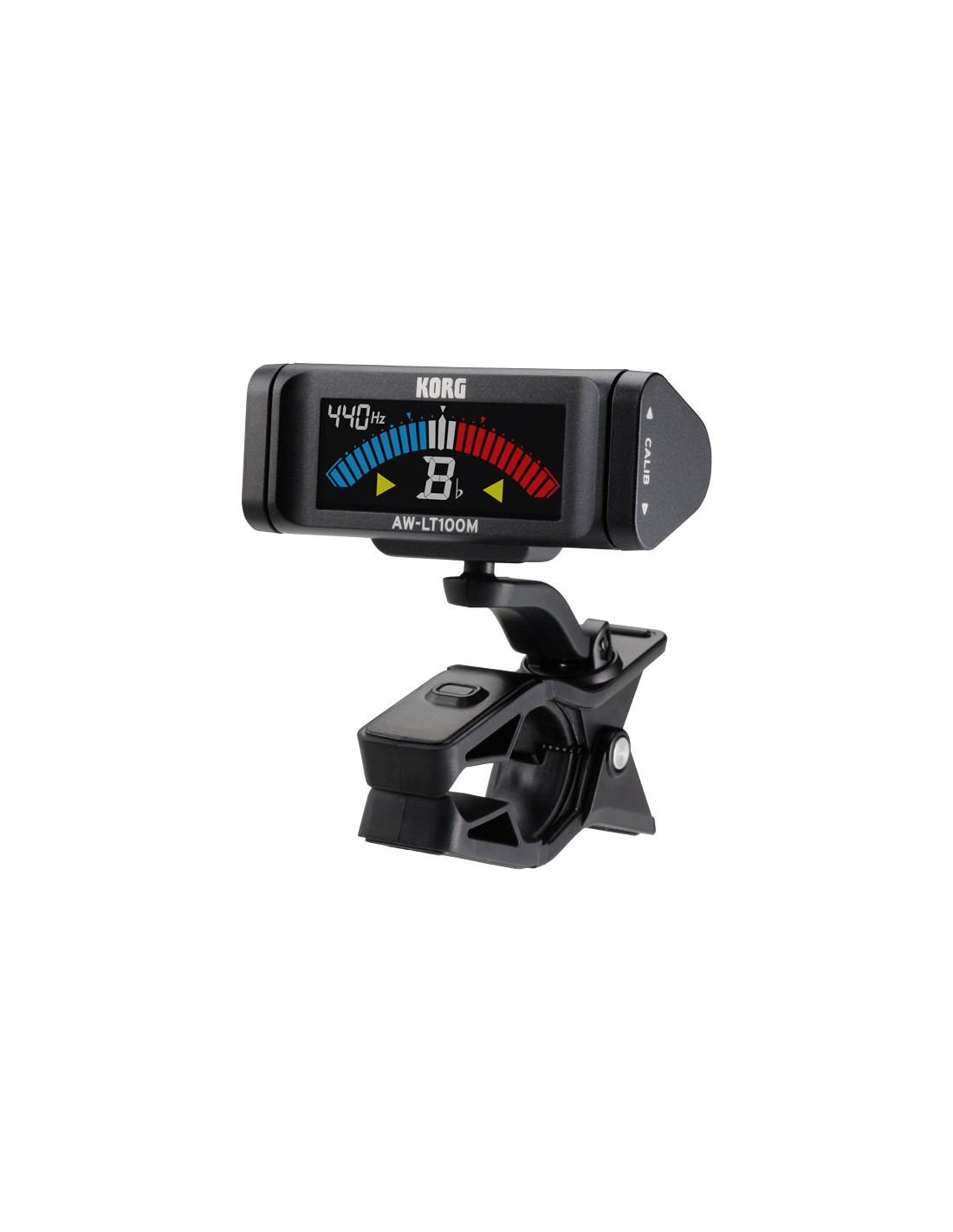 AFINADOR CROMÁTICO DE PINZA Afinador con pinza tipo clip de gran tamaño que admite una gran variedad de instrumentos orquestales. Batería de larga duración con 100 horas de funcionamiento continuo. Pantalla LCD de alto brillo en color. Afinación ultra-precisa de +/-0,1 centésima. Tres modos de medición estándar, estroboscópico y semi-estroboscópico. Mecanismo de clip con gran fuerza de suceción y flexibilidad. Peso 36 gramos (incluyendo batería).