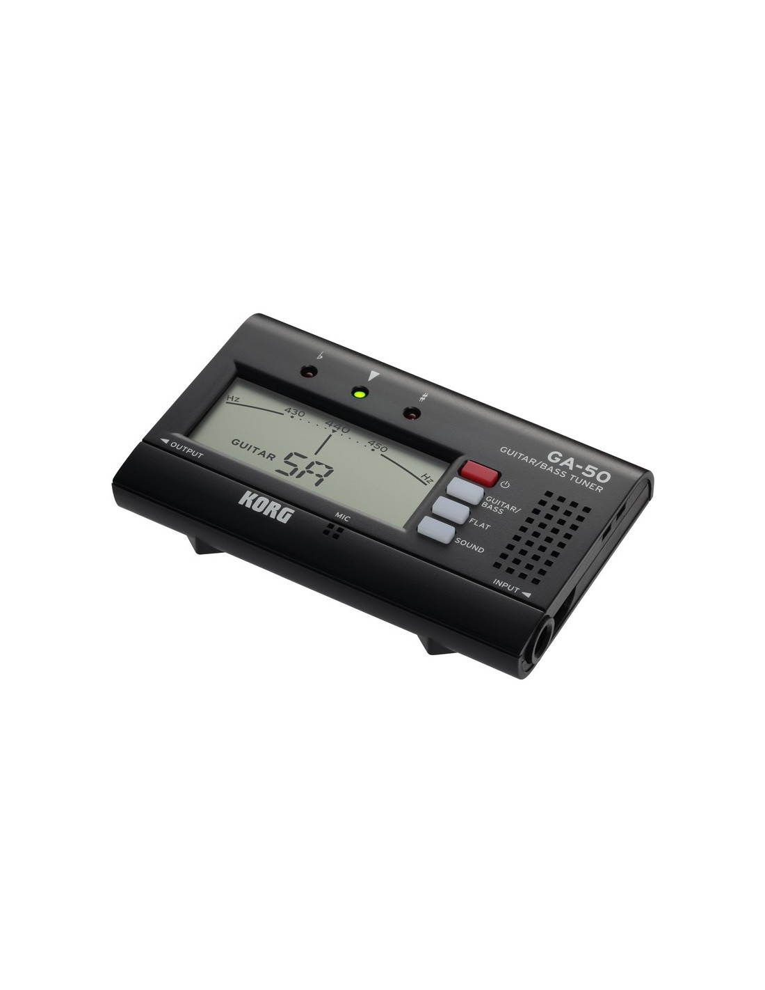 AFINADOR CROMÁTICO Nuevo afinador de guitarra Korg que sustituye al GA-40. Nueva pantalla más grande y fácil de leer. Nuevo diseño para un uso más fácil y estable sobreel atril. Modos de guitarra y bajo, con soporte para guitarras de 7 cuerdas y bajos de 5 o 6 cuerdas. Modo Sound Out con tonos de referencia. Funciones de respaldo de memoria y auto apagado. Autonomía de hasta 135 horas con 2 baterías AAA.