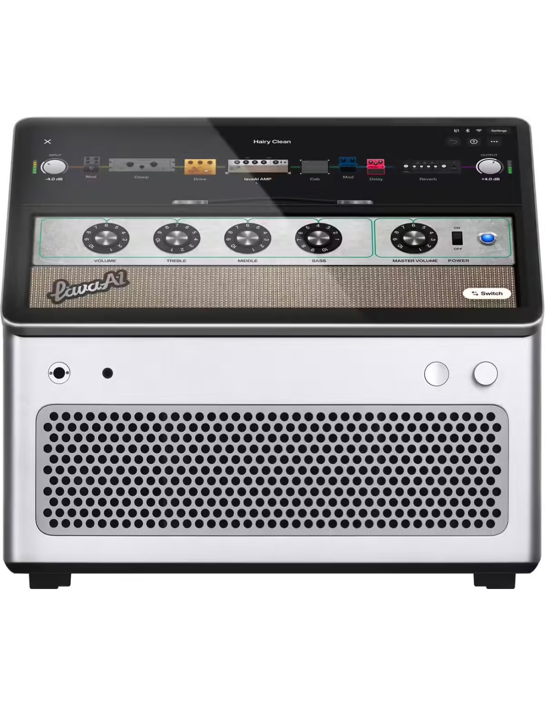 AMPLIFICADOR COMBO PARA GUITARRA El LAVA Studio es mucho más que un simple amplificador: es una auténtica estación de trabajo musical todo en uno. Combinando potencia, conectividad y una interfaz táctil intuitiva, transforma la forma en que los músicos componen, practican y graban. Diseñado para guitarristas, cantantes y creadores modernos, este sistema inteligente integra una pantalla táctil Full HD, un procesador de audio de alto rendimiento y una difusión de sonido envolvente.