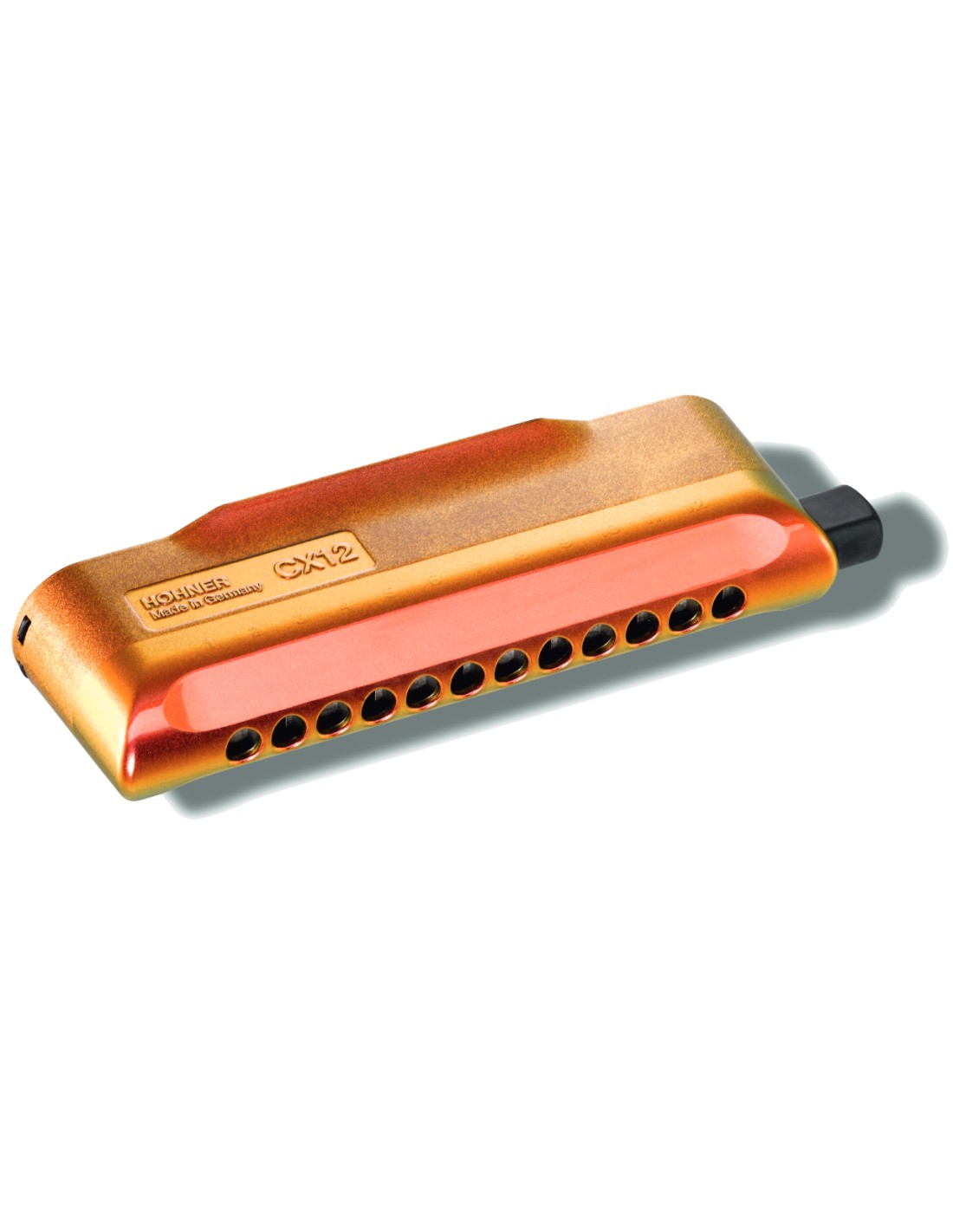 ARMÓNICA CROMÁTICA Diseño un poco más estrecho mejorando su embocadura. La nueva carcaña es totalmente compañible con las otras CX-12. Lengüetas de 1,05mm de latón. Acañado rojo a dorado. Superfície en ABS. 48 voces. Fabricaña en Alemania.