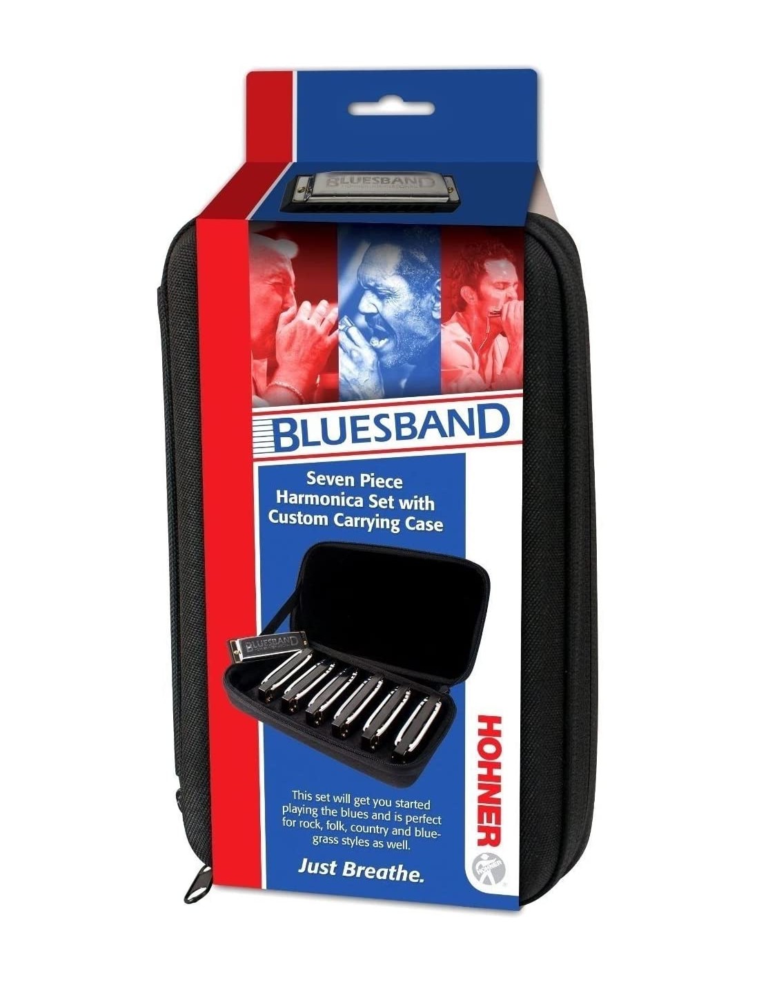 ARMÓNICA DIATÓNICA Pack compuesto por 7 armónicas Blues Band en afinaciones C, D, E, F, G y Bb. Incluye estuche Deluxe Black Pro. Dimensiones: 24.13 x 6.35 x 13.97 cm. Peso: 453.59 gramos.