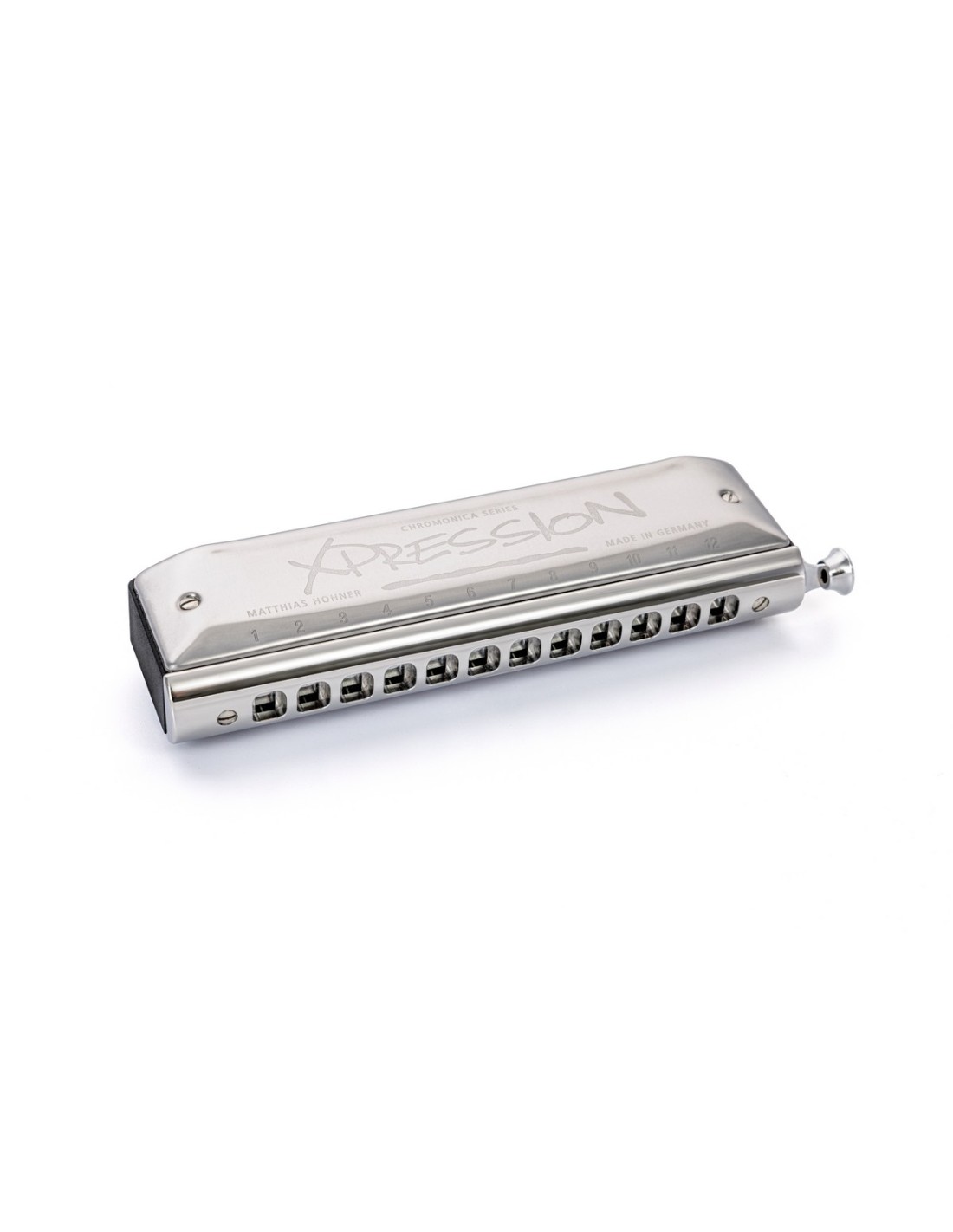 ARMÓNICA CROMÁTICA La nueva Chromonica 'XPRESSION' ofrece las últimas características técnicas y unas impresionantes capacidades musicales, lo que permite una interpretación expresiva y cómoda, alcanzable tanto por principiantes como por expertos y avanzados por igual. Gracias a su construcción de fácil mantenimiento y a la priorización de la estanqueidad al aire durante su desarrollo, la nueva 'XPRESSION' puede utilizarse fácilmente independientemente de las condiciones climáticas.Características:- Boquilla de acero inoxidable fresada mediante CNC con excelentes propiedades de deslizamiento y para proporcionar la máxima comodidad al intérprete- Tapas de acero inoxidable de forma ergonómica para un manejo cómodo- Peine de ABS resistente y acústicamente optimizado - Placas de lengüeta fabricadas para priorizar la máxima estanqueidad al aire- Lengüetas de latón mecanizadas con precisión capaces de soportar un uso intensivo- Todos los componentes ensamblados con tornillos para facilitar mantenimiento