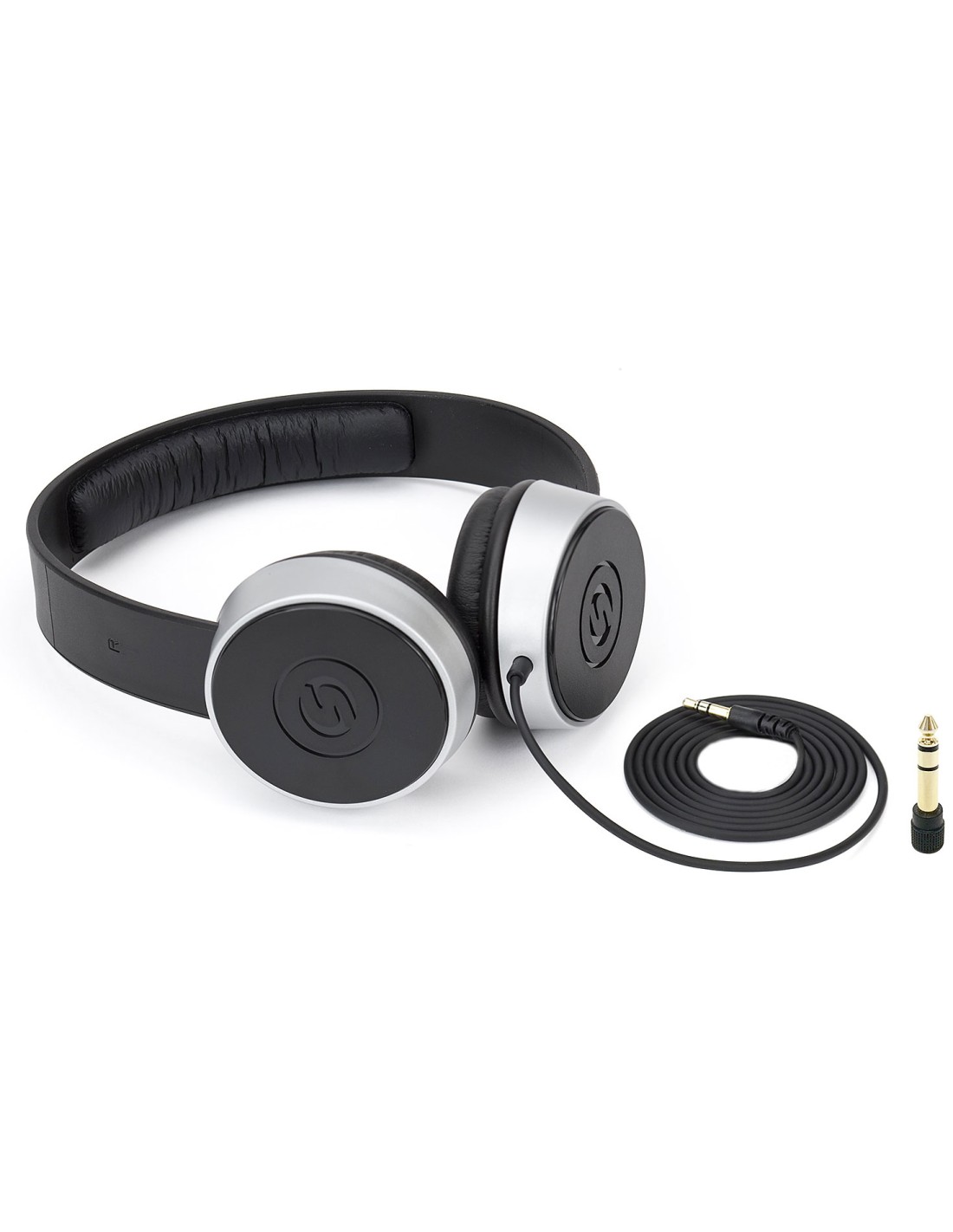 AURICULARES DE ESTUDIO Auriculares estéreo de diseño cerrado para máximoaislamiento. Amplia respuesta en frecuencia. Diámetro de altavoz 40 mm. Acolchado de orejeras y diadema para máximo confort. Adaptador de mini-Jack 1/8'' a Jack 1/4'' incluido. Para disfrutar de un buen sonido en cualquier lugar.