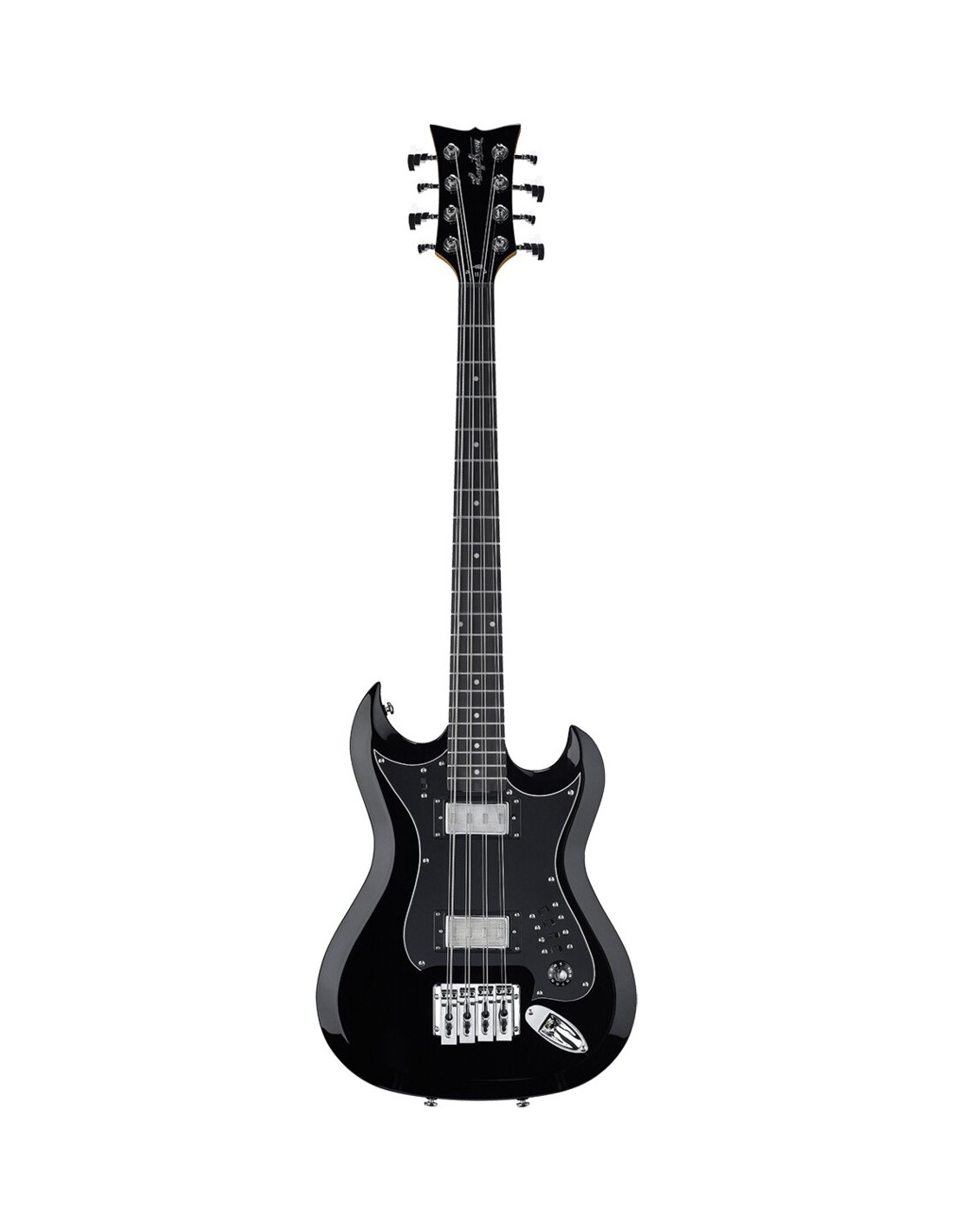 BAJO DE 8 CUERDAS 'H8-II 8-String Bass - Black Gloss - Mahogany Body, Maple Bolt-On Neck, Hagstrom BB-208 Bridge, 2 x Hagstrom Dyna Rail Mesh Covered Pickups Alnico 5, 1 x Vol (Push/Pull Coil Splits), 4 x Switches (Neck Pick-up - off/on, Bridge Pick-up - off/on, Master Tone - off/on, Mute - off/gain reduction & high cut),Scale Length 30.75'' (Short Scale Bass), 22:1 Hagstrom Tuners, H-Expander Truss Rod, Resinator Fretboard'