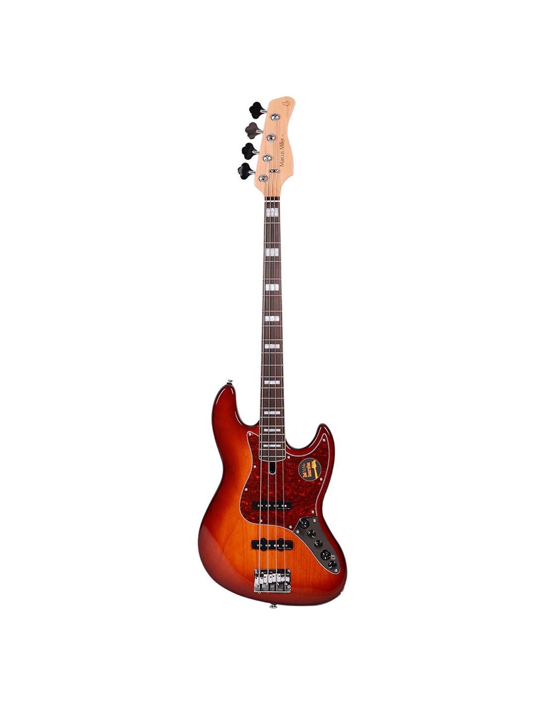 BAJO DE 4 CUERDAS Marcus Miller Bass. 2nd Gen. Cuerpo : Aliso americano. Forma : New Marcus Miller Jazz Type. Mástil : 1 pieza de Arce (Satinado). Forma : C-Shape. Escala : 34''. Diapasón (Rolled Edges) : Ébano. Radio diapasón : 9.5''. Trastes : 2.4 medium. Cejuela : 4 String – Natural Bone 38mm width.Incrustaciones : WH Pearloid Block. Unión del mástil : 4 Bolt Steel Square Plate. Pastillas : Marcus Super-J Revolution Set. Electrónica : Marcus Heritage-3 with Middle Frequency Control. Controles : Volume / Tone(Dual Pot) Pickup Blender Treble Middle / Middle Frequency (Dual Pot) Bass, Mini Toggle(Active / Passive). Potenciómetros : Plastic Jazz Type in Black. Puente : Marcus Miller Heavy Mass Standard. Clavijeros : Premium Open-Gear. Herrajes : Chrome. Golpeador : Tortoise. Acabado Tobacco Sunburst.