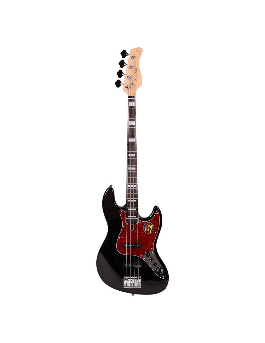 BAJO DE 4 CUERDAS Marcus Miller Bass. 2nd Gen. Cuerpo : Aliso americano. Forma : New Marcus Miller Jazz Type. Mástil : 1 pieza de Arce (Satinado). Forma : C-Shape. Escala : 34''. Diapasón (Rolled Edges) : Ébano. Radio diapasón : 9.5''. Trastes : 2.4 medium. Cejuela : 4 String – Natural Bone 38mm width. Incrustaciones : WH Pearloid Block. Unión del mástil : 4 Bolt Steel Square Plate. Pastillas : Marcus Super-J Revolution Set. Electrónica : Marcus Heritage-3 with Middle Frequency Control. Controles : Volume / Tone(Dual Pot) Pickup Blender Treble Middle / Middle Frequency (Dual Pot) Bass, Mini Toggle(Active / Passive). Potenciómetros : Plastic Jazz Type in Black. Puente : Marcus Miller Heavy Mass Standard. Clavijeros : Premium Open-Gear. Herrajes : Chrome. Golpeador : Tortoise. Acabado Black.