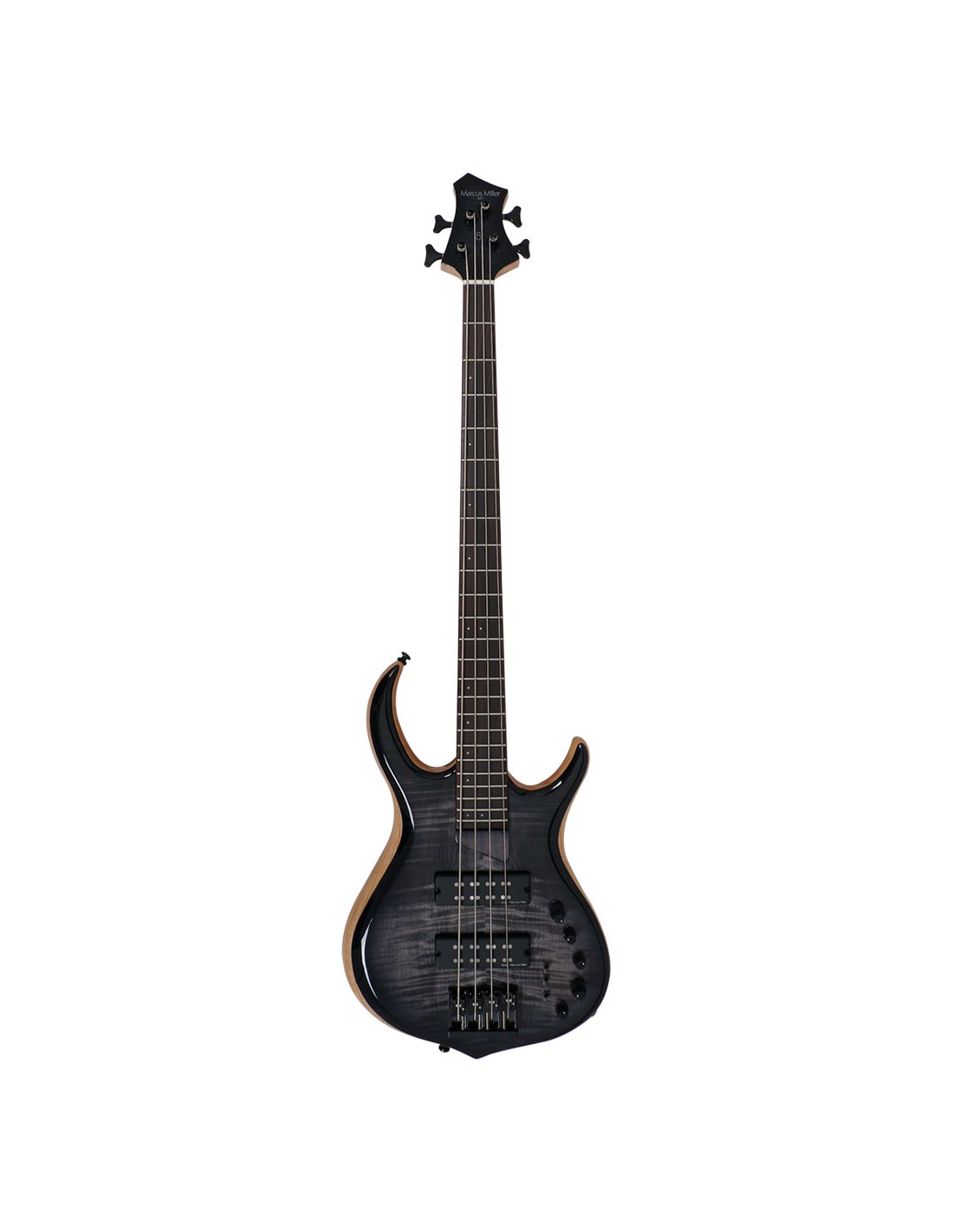 BAJO DE 4 CUERDAS Marcus Miller Bass. 2nd Gen. Cuerpo : Fresno con tapa maciza de arce. Forma : New Modern Bass. Mástil : Arce canadiense(Scarf Joint). Forma : C-Shape. Escala : 34''. Unión del mástil : 4. Diapasón(Rolled Edges) : Ébano. Radio diapasón : 12”. Trastes : Medium, 24 Trastes. Cejuela : 4 String – Natural Bone 38mm. Incrustaciones : White Pearl Dot. Pastillas : Marcus Pure-H Revolution Set. Electrónica : Marcus Miller Heritage-3 with Middle Frequency Control. Potenciómetros : Modern Black Plastic. Puente : Marcus Miller Heavy Mass Custom. Clavijeros : Sire Diecasting Gear. Herrajes : Black. Acabado Trans Black.