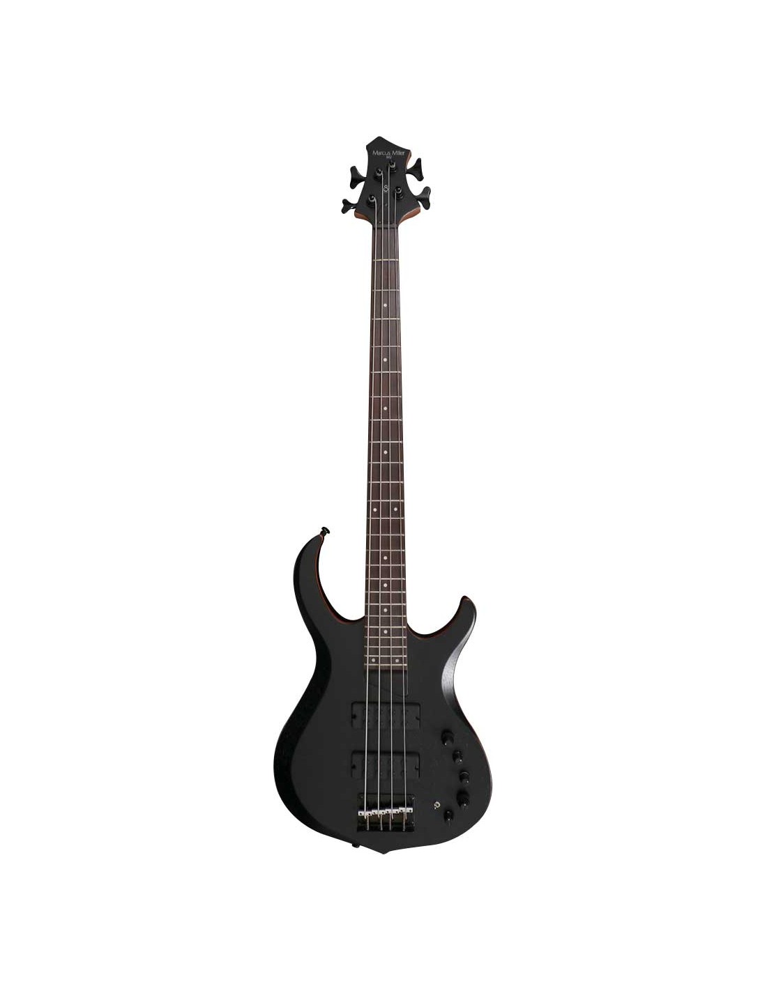 BAJO DE 4 CUERDAS Marcus Miller Bass. 2nd Gen. Cuerpo : Caoba. Forma : New Modern Bass. Mástil : Arce canadiense. Forma : C-ShapeEscala : 34''. Unión del mástil : 4 Bolt Indivisual Bushing Type. Diapasón(Rolled Edges) : arce (TBL). Radio diapasón : 12”. Trastes : Medium, 24 Trastes. Cejuela : 4 String – PPS Tusk Black 38mm width. Incrustaciones : White Pearl Dot. Pastillas : Marcus Blue Humbucker Set. Electrónica : Marcus Miller Heritage-3 with Middle Frequency Control. Controles : Volume / Tone(Dual Pot) Pickup Blender Treble Middle / Middle Frequency(Dual Pot) Bass, Mini Toggle(Active / Passive). Potenciómetros : Modern Black Plastic. Puente : Marcus Standard Bass Puente with Body Thru Hole Option. Clavijeros : Basic Diecasting Gear. Herrajes : Black. Acabado Trans Black.