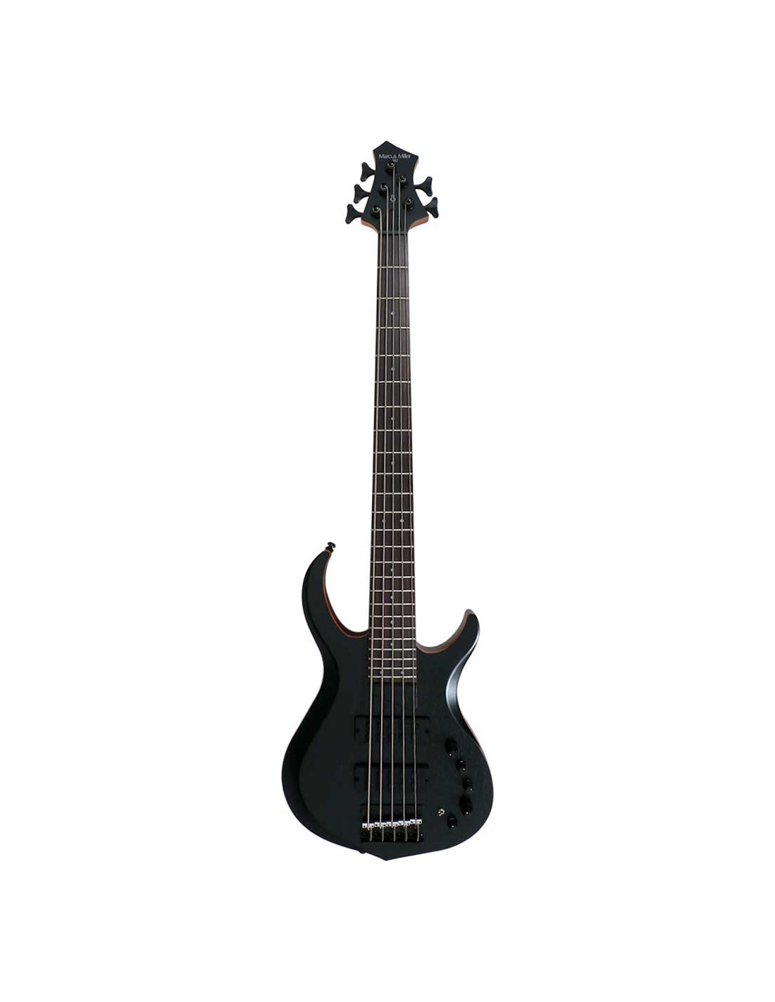 BAJO DE 5 CUERDAS Marcus Miller Bass. 2nd Gen. 5 cuerdas. Cuerpo : Caoba. Forma : New Modern Bass. Mástil : Arce canadiense. Forma : C-ShapeEscala : 34''. Unión del mástil : 4 Bolt Indivisual Bushing Type. Diapasón(Rolled Edges) : arce. Radio diapasón : 12”. Trastes : Medium, 24 Trastes. Cejuela : 5 String – PPS Tusk Black 45mm width. Incrustaciones : White Pearl Dot. Pastillas : Marcus Blue Humbucker Set. Electrónica : Marcus Miller Heritage-3 with Middle Frequency Control. Controles : Volume / Tone(Dual Pot) Pickup Blender Treble Middle / Middle Frequency(Dual Pot) Bass, Mini Toggle(Active / Passive). Potenciómetros : Modern Black Plastic. Puente : Marcus Standard Bass Puente with Body Thru Hole Option. Clavijeros : Basic Diecasting Gear. Herrajes : Black. Acabado Trans Black.