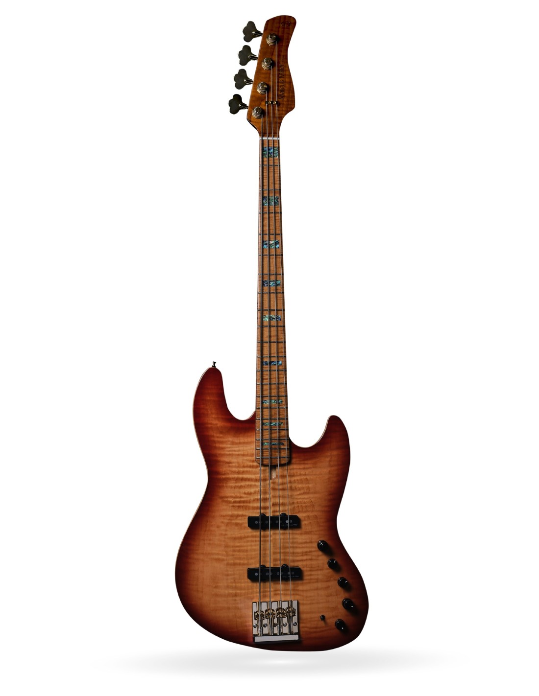 Cuerpo : Fresno (swamp ash) con tapa maciza de arce flameado. Forma : New Marcus Miller Jazz Type. Mástil de arce tostado (satinado). Forma: C-Shape. Escala: 34''. Unión del mástil: atornillado (Bolt-On). Diapasón (Rolled Edges): arce tostado. Radio diapasón: 9.5''. Trastes: 2.4 medium. Cejuela: 4 cuerdas, hueso, 38mm anchura. Incrustaciones : bloques de abalone. Pastillas: Marcus Premium-J Revolution Set. Electrónica: Marcus Heritage-3 con Middle Frequency Control. Controles: Volume / Tone (Dual Pot) Pickup Blender Treble Middle / Middle Frequency (Dual Pot) Bass, Mini Toggle (Active / Passive). Potenciómetros: en aluminio negro. Puente: Hipshot Kickass. Clavijeros: Hipshot USA Ultralite. Herrajes: dorados. Golpeador: incluye golpeador transparente. Incluye estuche. Acabado: Tobacco Sunburst.