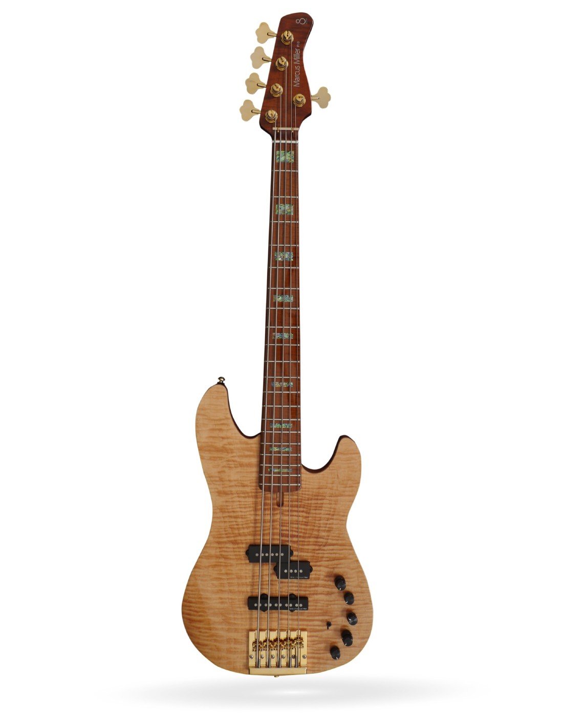 Cuerpo : Fresno (swamp ash) con tapa maciza de arce flameado. Forma : New Marcus Miller P-Bass Type. Mástil de arce tostado (satinado). Forma: C-Shape. Escala: 34''. Unión del mástil: atornillado (Bolt-On). Diapasón (Rolled Edges): arce tostado. Radio diapasón: 9.5''. Trastes: 2.4 medium. Cejuela: 5 cuerdas, hueso, 46mm anchura. Incrustaciones : bloques de abalone. Pastillas: Marcus PJ Revolution Set. Electrónica: Marcus Heritage-3 con Middle Frequency Control. Controles: Volume / Tone (Dual Pot) Pickup Blender Treble Middle / Middle Frequency (Dual Pot) Bass, Mini Toggle (Active / Passive). Potenciómetros: en aluminio negro. Puente: Hipshot Kickass. Clavijeros: Hipshot USA Ultralite. Herrajes: dorados. Golpeador: incluye golpeador transparente. Incluye estuche. Acabado: Natural.