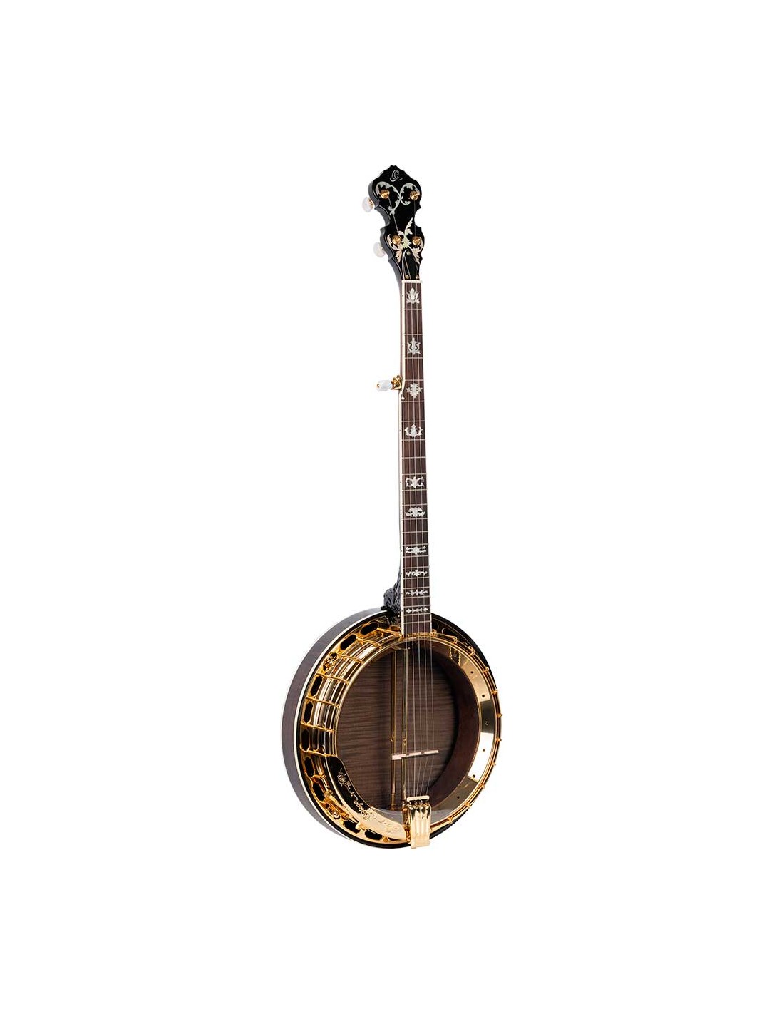 BANJO Banjo profesional de 5 cuerdas, con cuerpo de arce flameado, mastil de arce, herrajes dorados y acabado natural satinado. Incluye funda