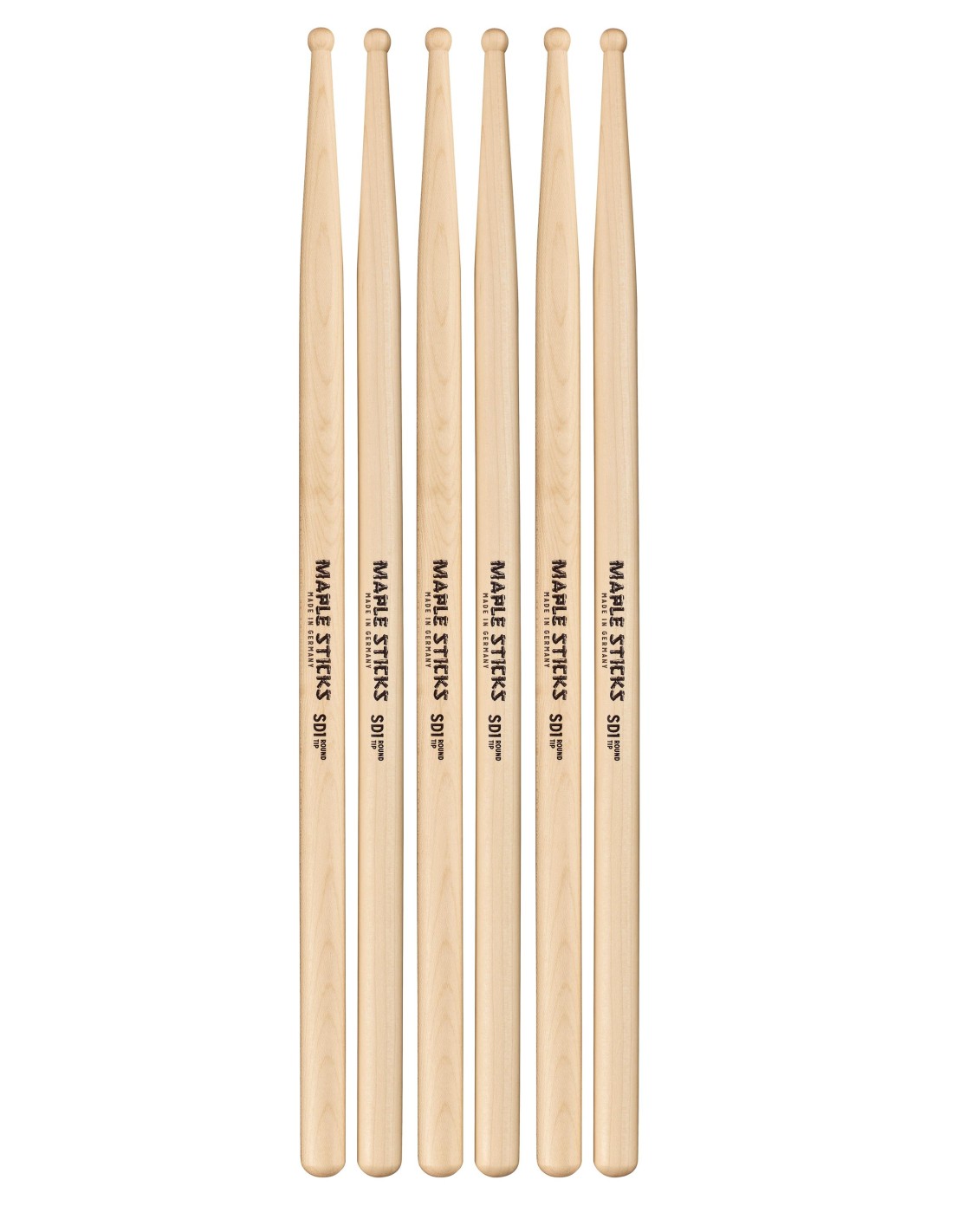 BAQUETAS Baquetas de arce, SD1, punta redondeada, 3-PACK. Las baquetas Meinl están hechas bajo los exigentes criterios de calidad habituales de la marca. Cada par está terminado de manera precisa y fina. Y son emparejados no solo por peso sino también por referencia tonal para que cada baqueta de cada par te suenen iguales.