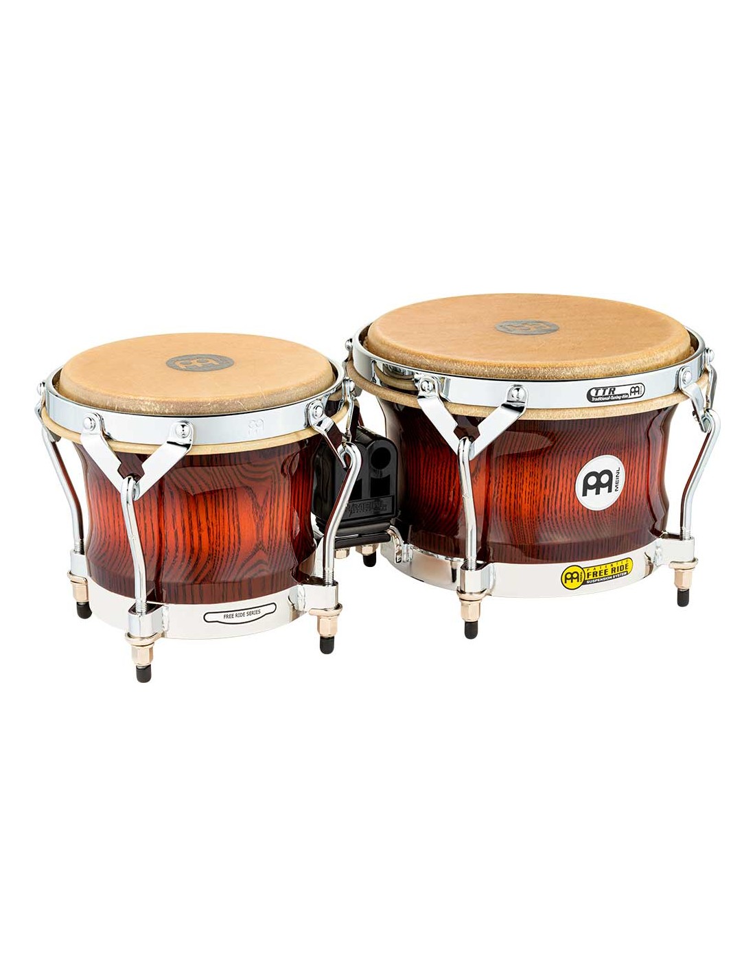 BONGOS 'Set de bongós acabado Antique Mahogany Burst (7'' y 9''). Serie Woodcraft. Un excelente bongo con el innovador sistema Free Ride que no perfora los cascos aumentado así la resonancia y volumen. El cuerpo es de fresno americano y los parches de piel de búfalo seleccionada a mano. Además montan una pieza central patentada y de plástico que permite una sujeción total al pie de bongó si se requiriese.